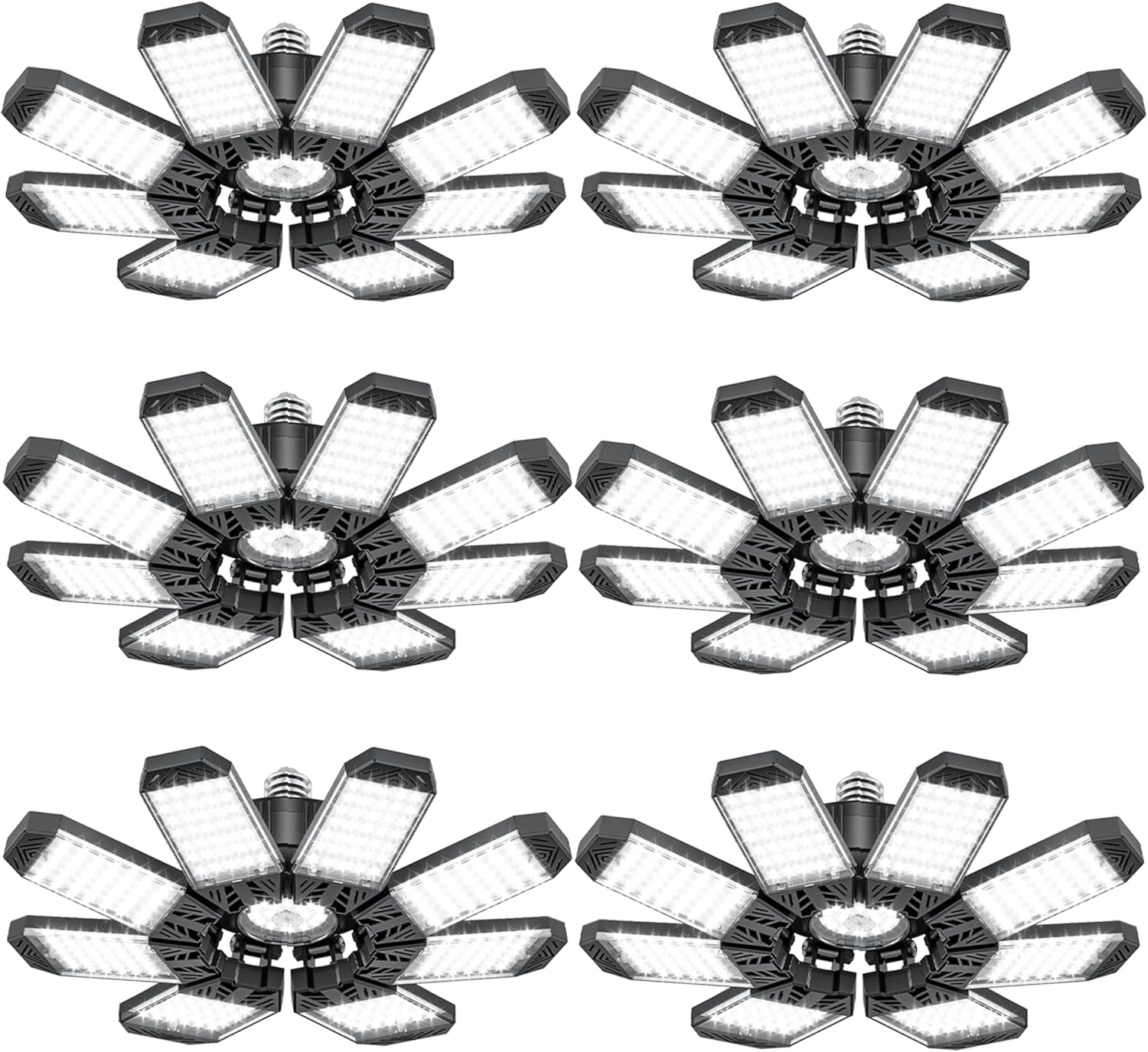 ISKYDRAW Garage Lights 6 Pack, 260W 26000LM Bright LED Garage Light with 8+1 Foldable Panels, Ceiling Basement Lights Screw in E26 E27 Socket Shop Bay Lighting for Workshop, Barn, Warehouse