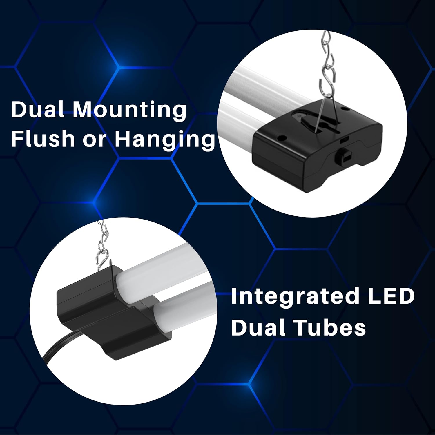 - LINKABLE: Link up to 4 units per circuit to effectively brighten your workspace. Install flush mount or hanging from your location of choice.