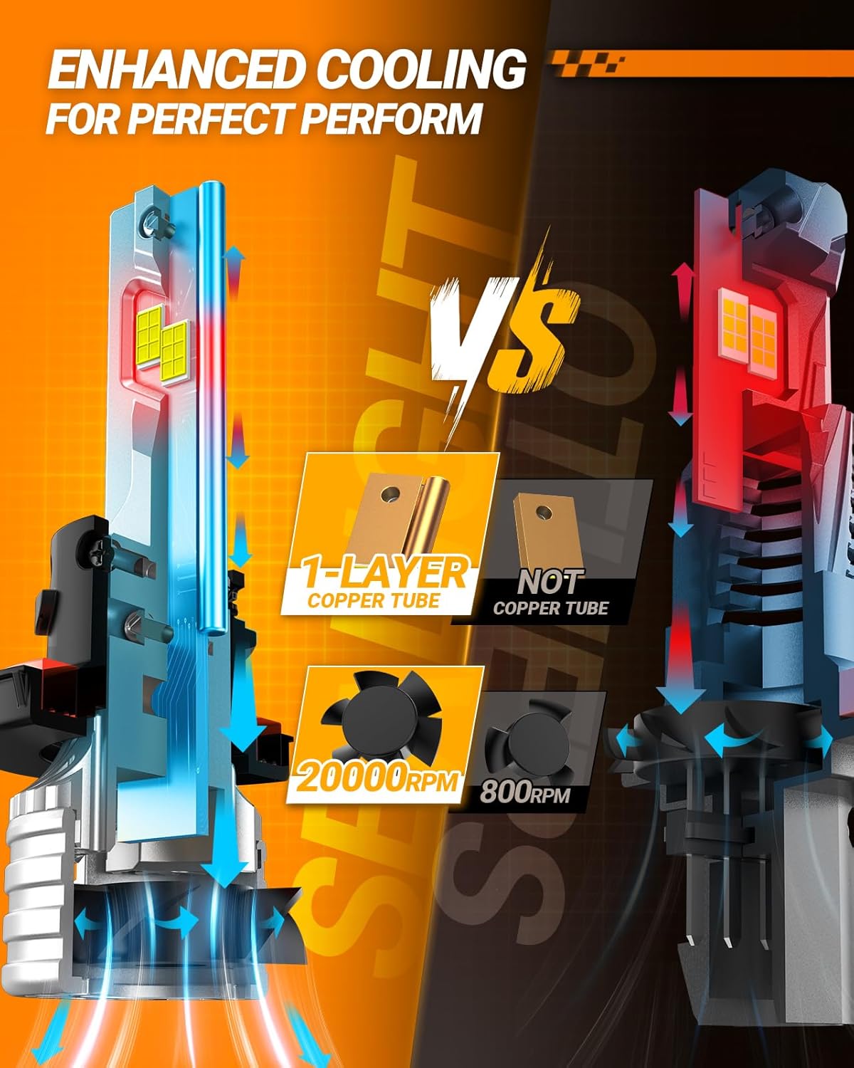 - Over 50,000 Hours Long Lifespan: The double cooling copper tube and 20,000 RPM cooling turbo fan helps speed down the core temperature, reached a perfect balance of long-lasting lighting and service life. No frequent bulb replacement troubled