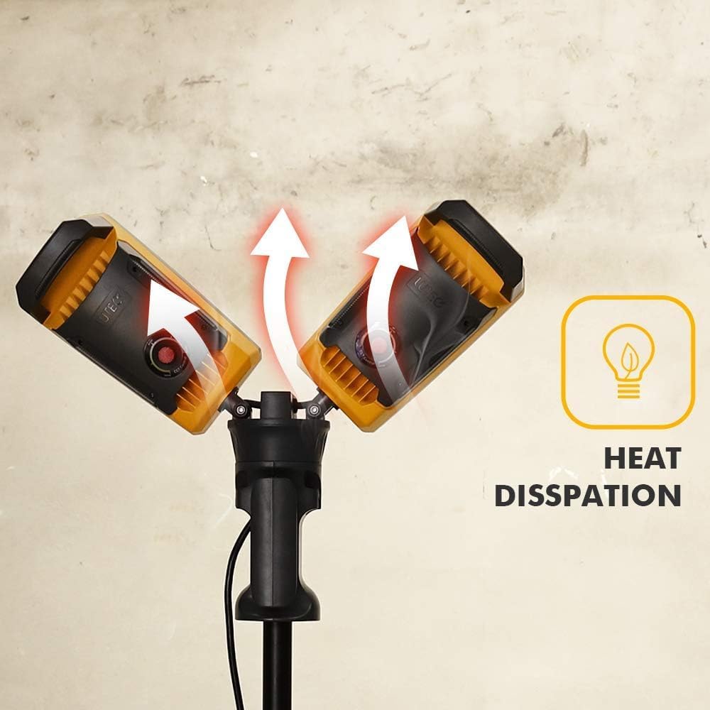 LUTEC 【Upgraded】 6290Max 15000 Lumen 138W Dimmable LED Work Light with Telescoping Tripod, Adjustable Color Temperature Dual-Head Work Light with Stand and 8 Ft 3-Prong Power Cord