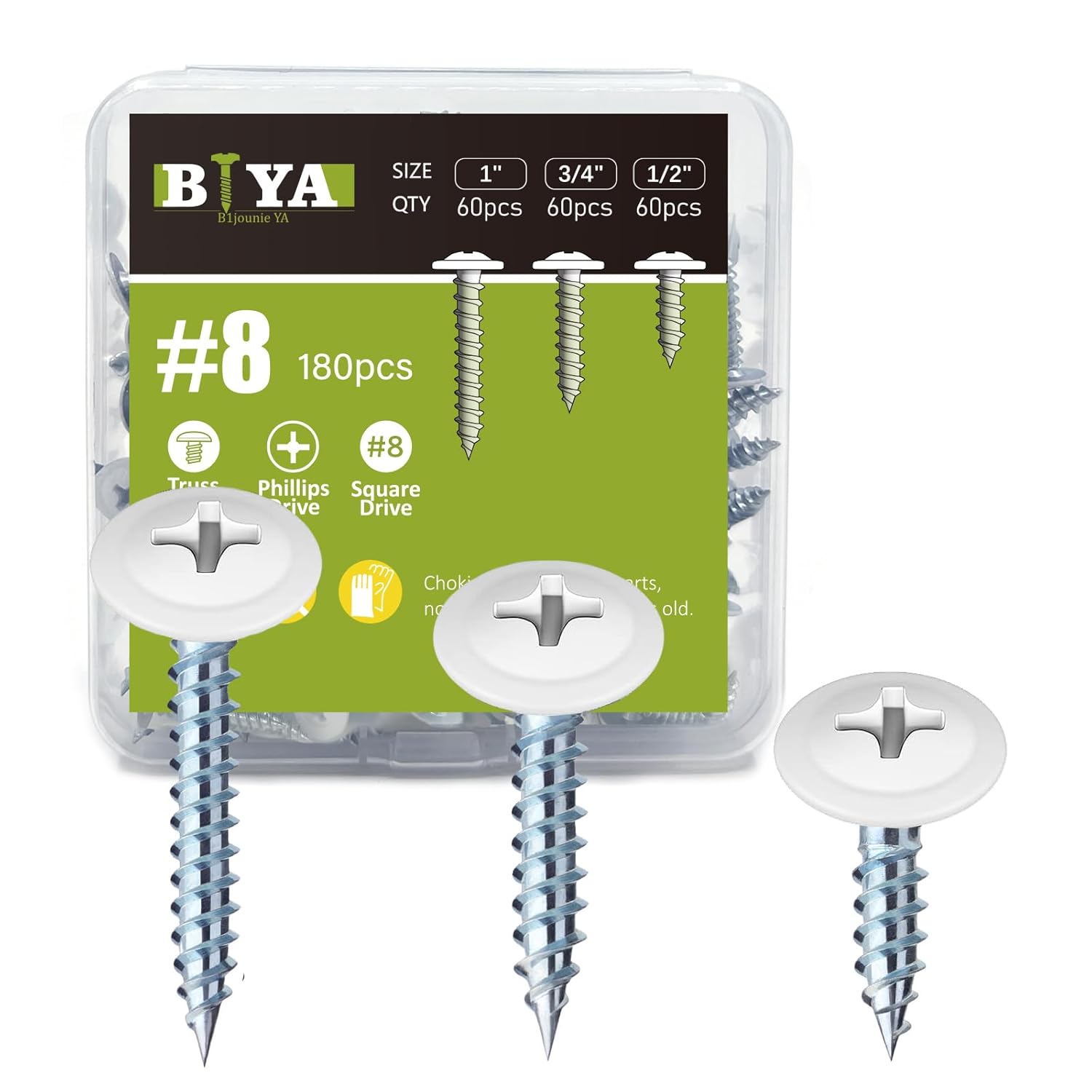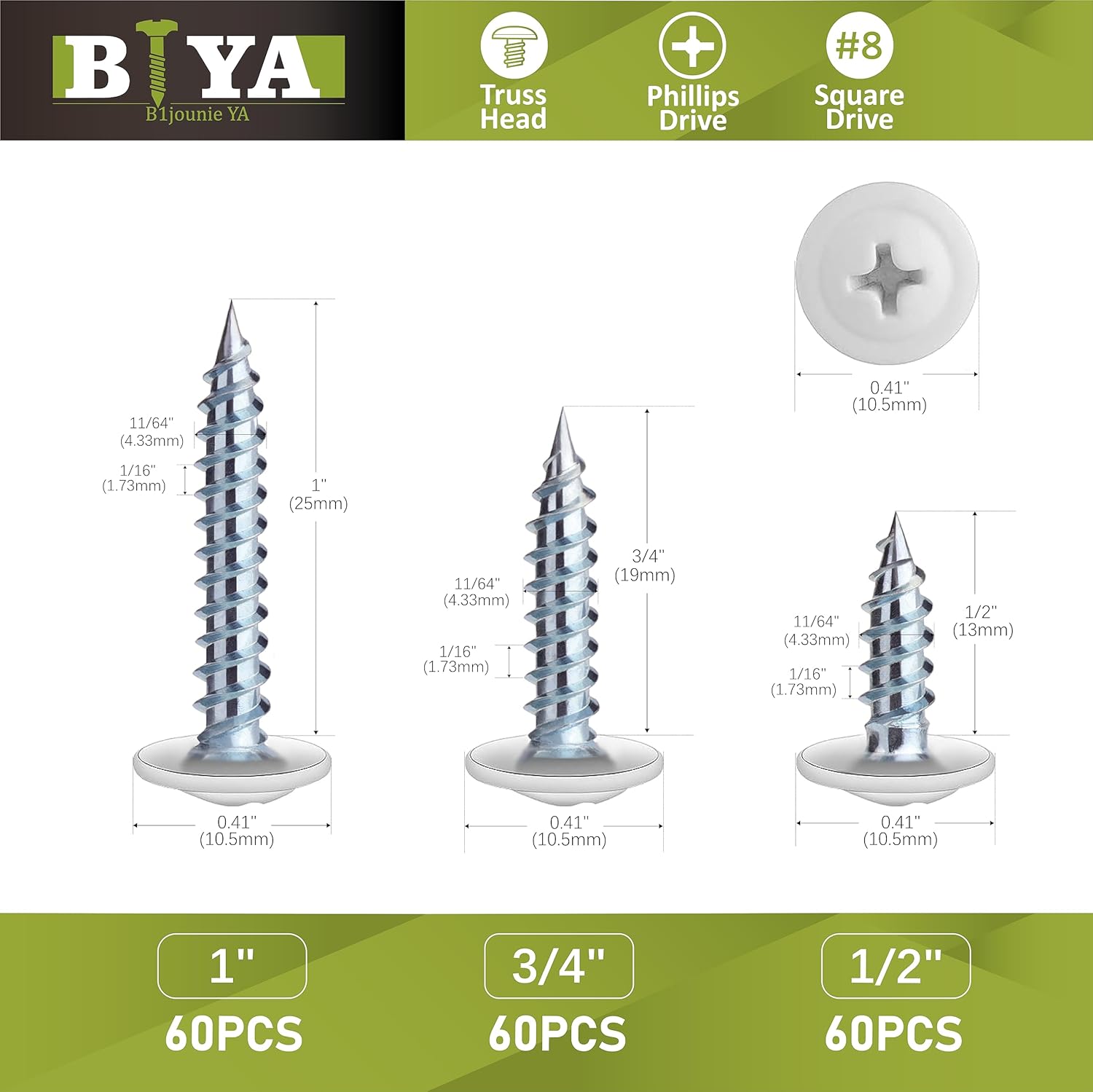 White Wood Screws, 180pcs Thread Truss Head Fast Self Tapping Pan Cabinet Screws for Wall Plates, 1/2 Inch, 3/4 Inch, 1 Inch
