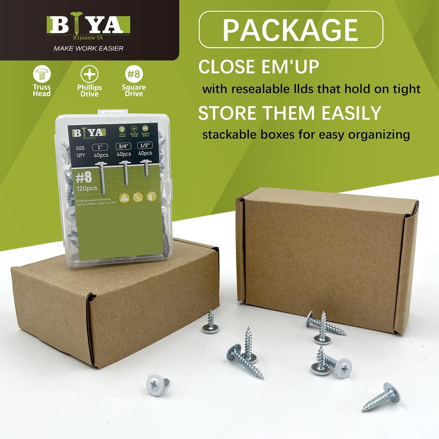 White Screws,#8 White Wood Screws 120pcs Thread Truss Head Fast Self Tapping White Pan Cabinet Screws Wood Work for Wall Plates, 1/2 Inch, 3/4 Inch, 1 Inch