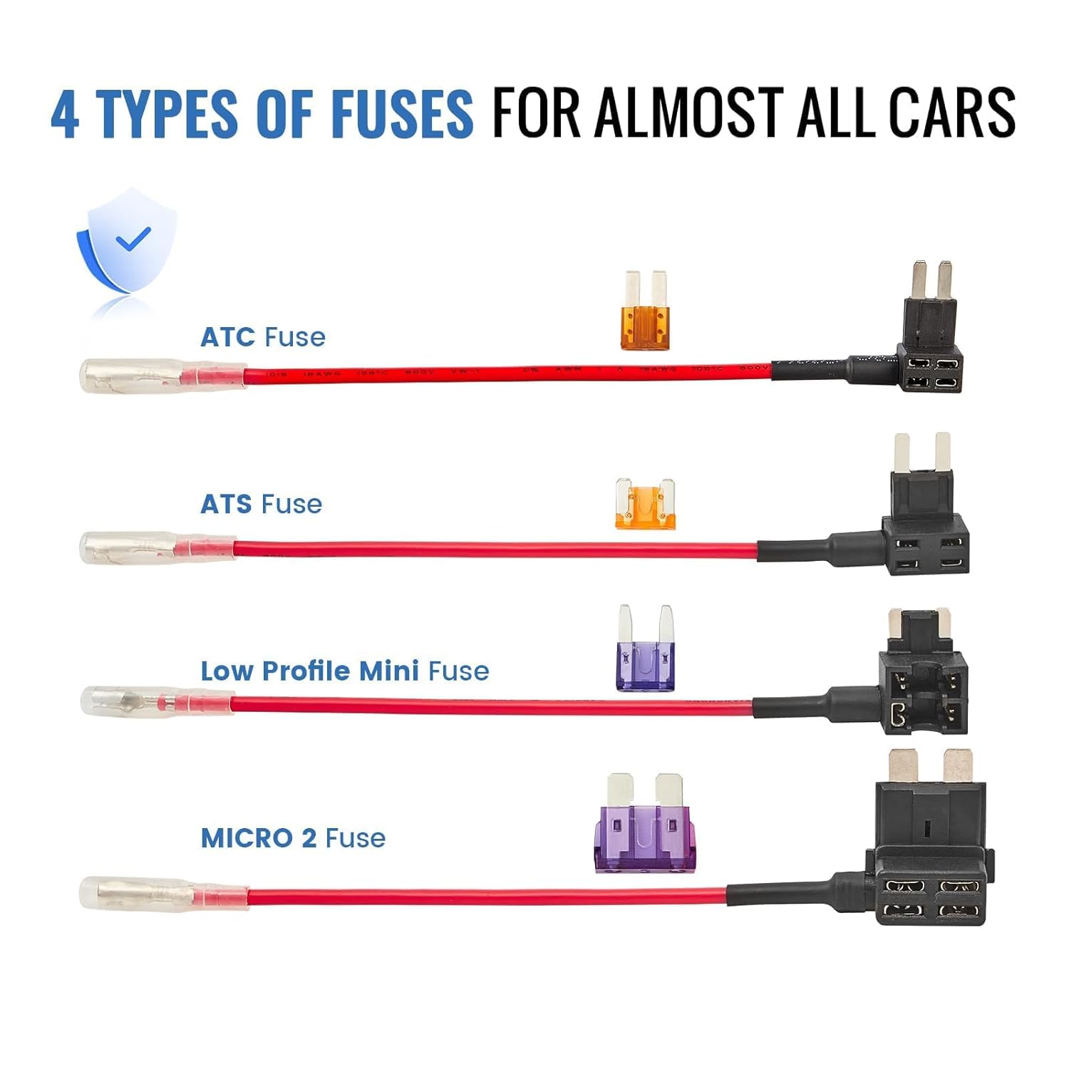 - 【Multiple Fuse Size】Include 4 common sizes Tap-A-Fuse: ATC, ATS, Mini, and Micro 2, suitable for most cars. Come with 2x3a and 2x5a fuse for the Tap-A-Fuse. Easily connects multiple types of radar detectors, protect your vehicle from short circuit.