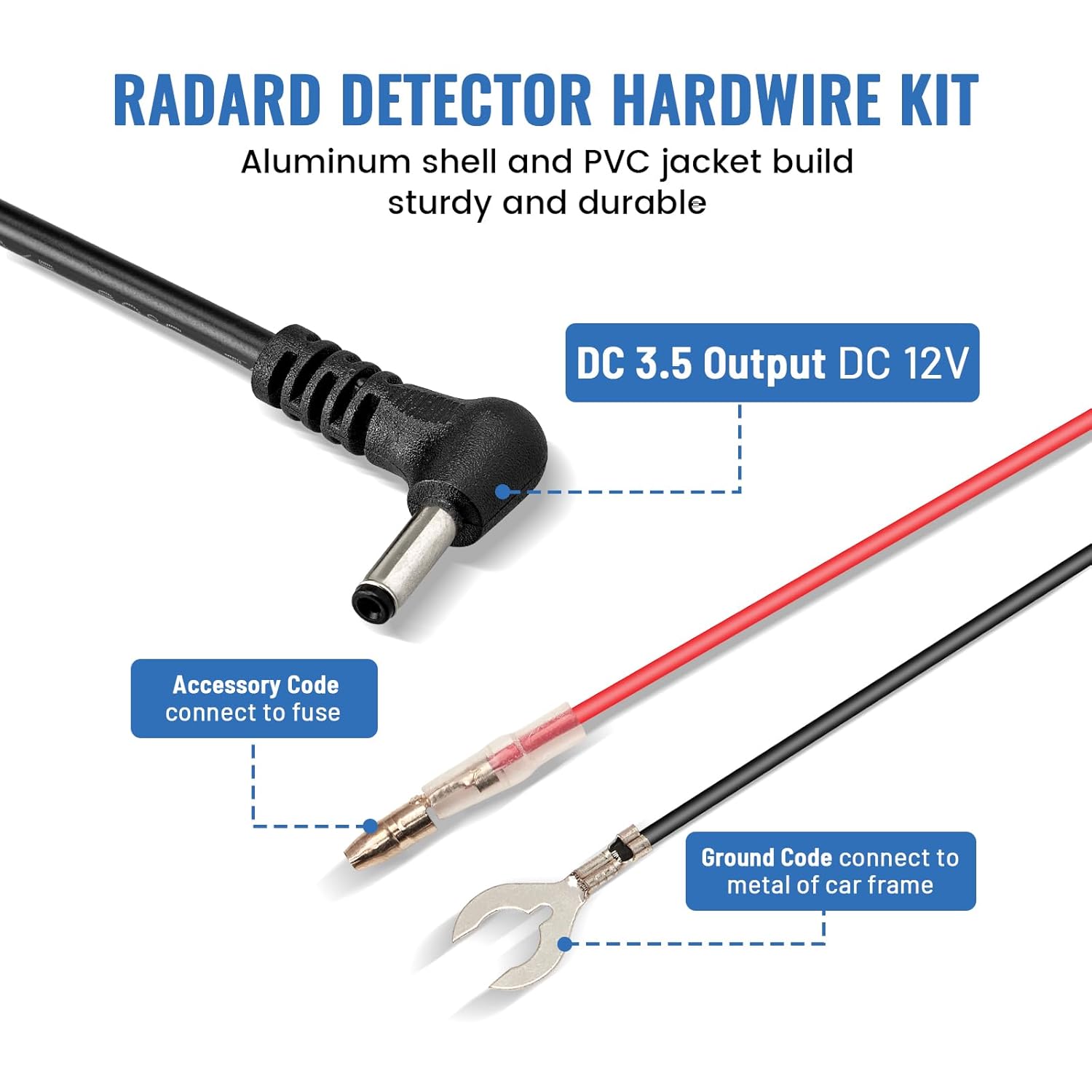- 【Installation Note】DC "3.5" radar detector power charger direct wiring kit could be hard wired to your car 12V plus and minus supply line Including safety fuse to protect the car and the device. Comes with a circuit test pencil, helps determine the fuse slot before installing.
