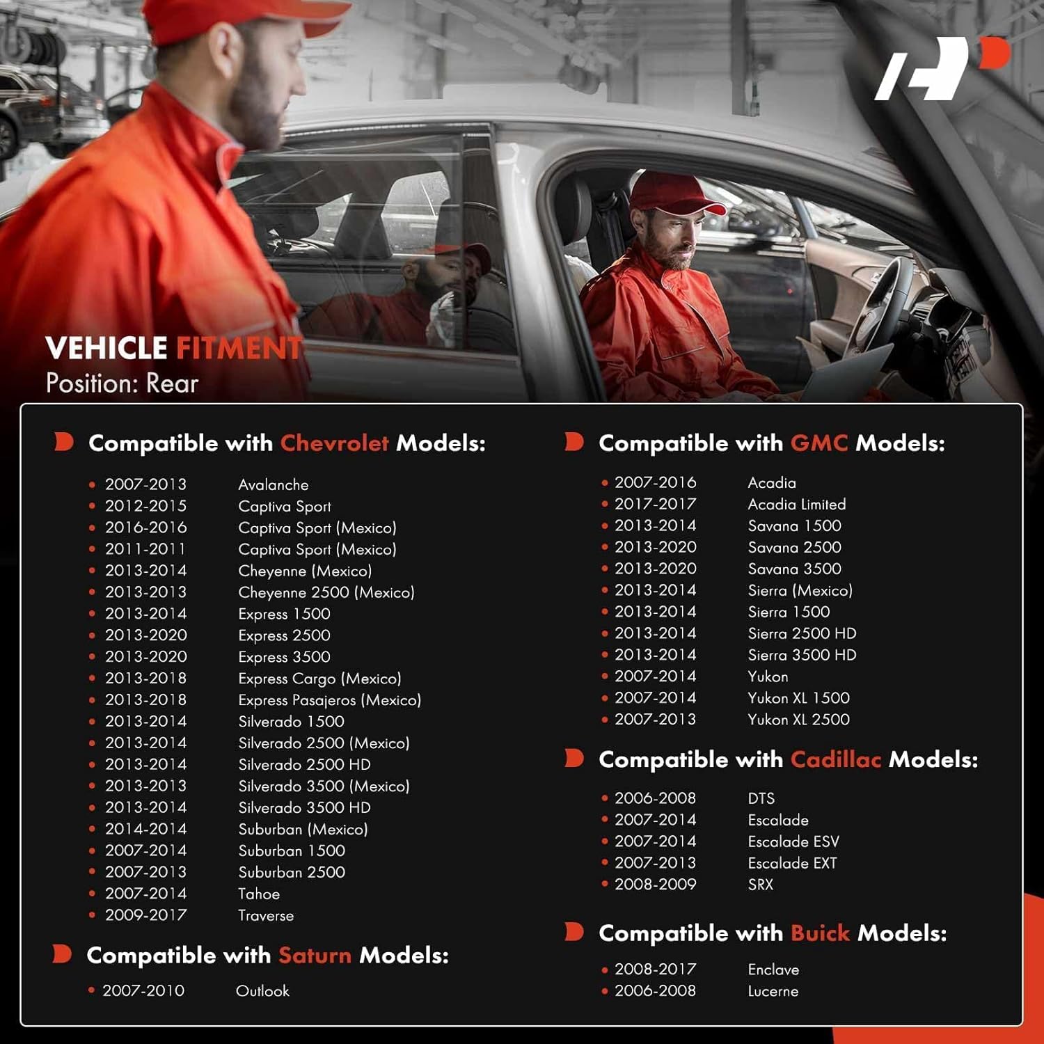 - [Vehicle Fitment-1]: Compatible with Chevrolet Silverado 1500 2013-2014, Silverado 2500 HD/3500 HD 2013-2014, Suburban 1500 2007-2014, Suburban 2500 2007-2013, Express 1500 2013-2014, Express 2500/3500 2013-2020, Traverse 2009-2017, Tahoe 2007-2014, Avalanche 2007-2013, Captiva Sport 2012-2015; Compatible with Cadillac DTS 2006-2008, Escalade/Escalade ESV 2007-2014, Escalade EXT 2007-2013, SRX 2008-2009 --- Rear Parking Assist Sensors Set