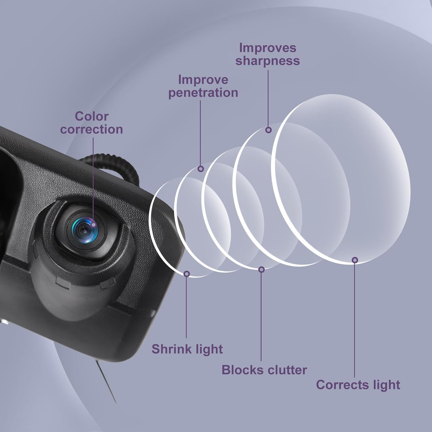 - Features】NTSC camera system, high definition capture day and night, presenting quality vision for your driving.