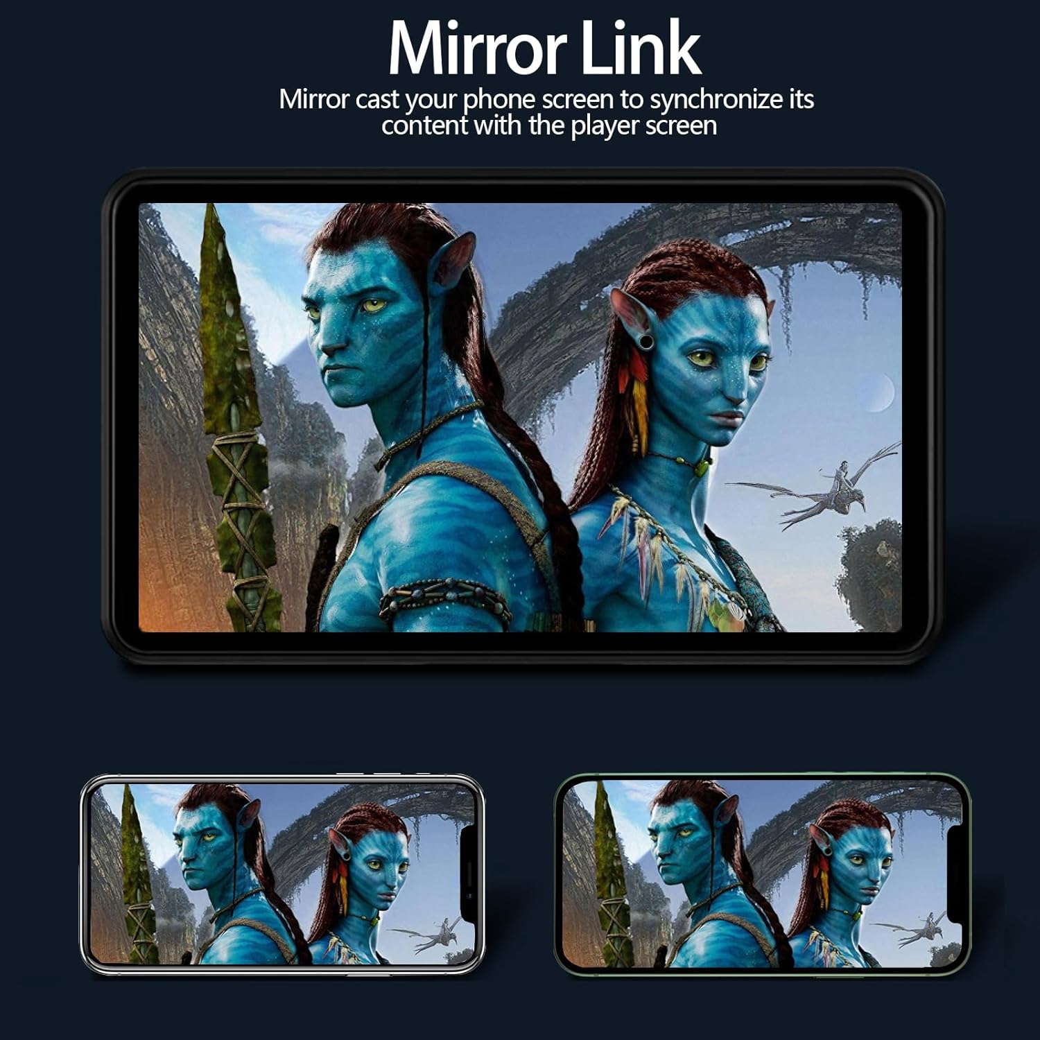 - ă7ââ HD Car Touch Screen & Mirror Link FunctionăThe Portable Bluetooth car radio supports smartphone mirror link function for both Android & IOS with 1024*600P car touch screen,its great to mirror movies for kids to watch on long trips, easily sync Youtube, TIKTOK Videos, vedio, GPS,enjoy the high-definition large-screen video experience.