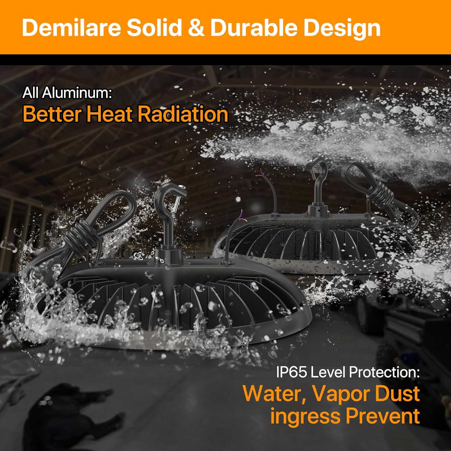 - Durable Waterproof Design: Built to withstand tough conditions, our high bay led lights are IP65 waterproof rated, ensuring long-lasting performance even in challenging environments, making them reliable for both indoor and outdoor use.