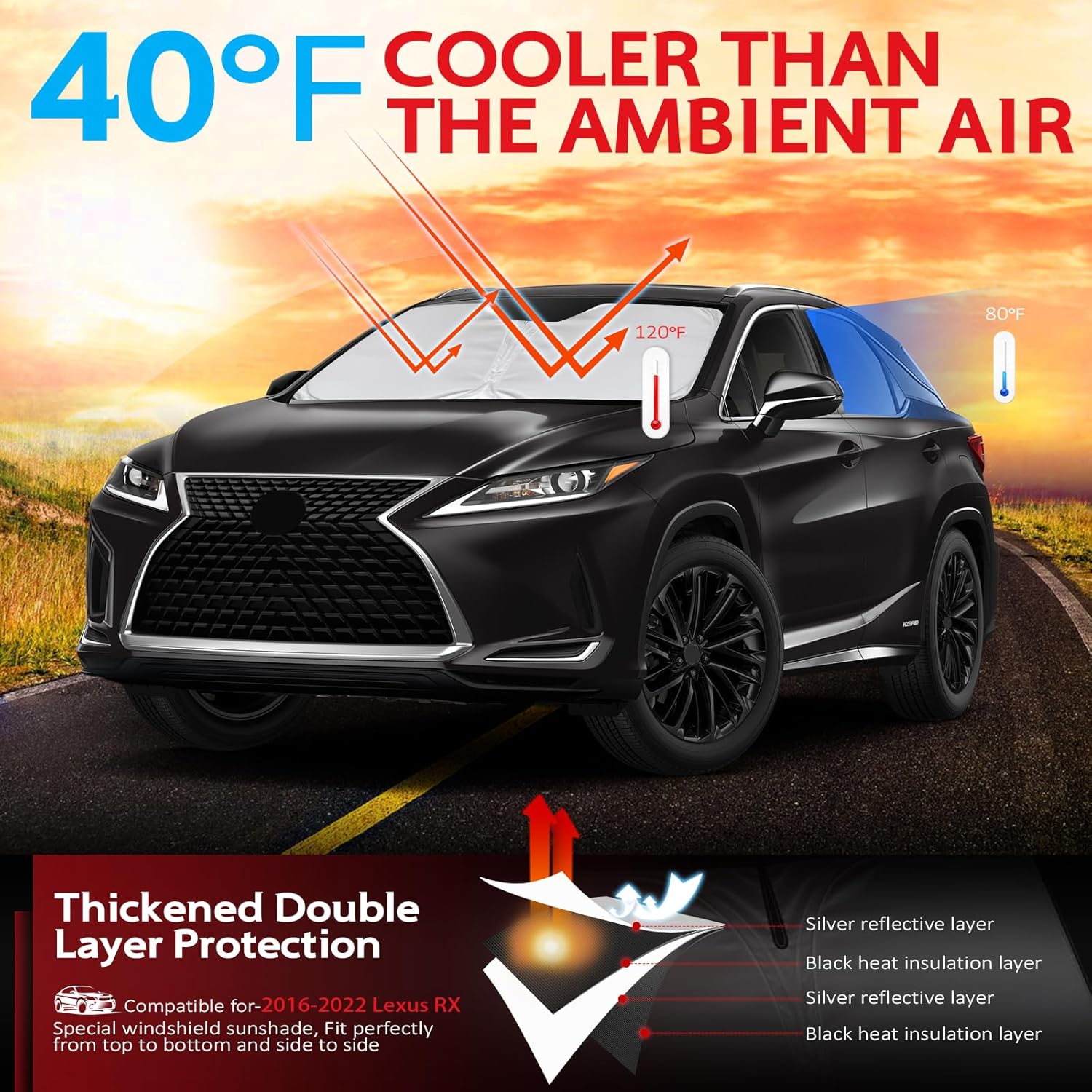 KAYZT Windshield Sun Shade for 2016-2022 Lexus RX Foldable Sunshade Front Window Custom Fit Car Accessories