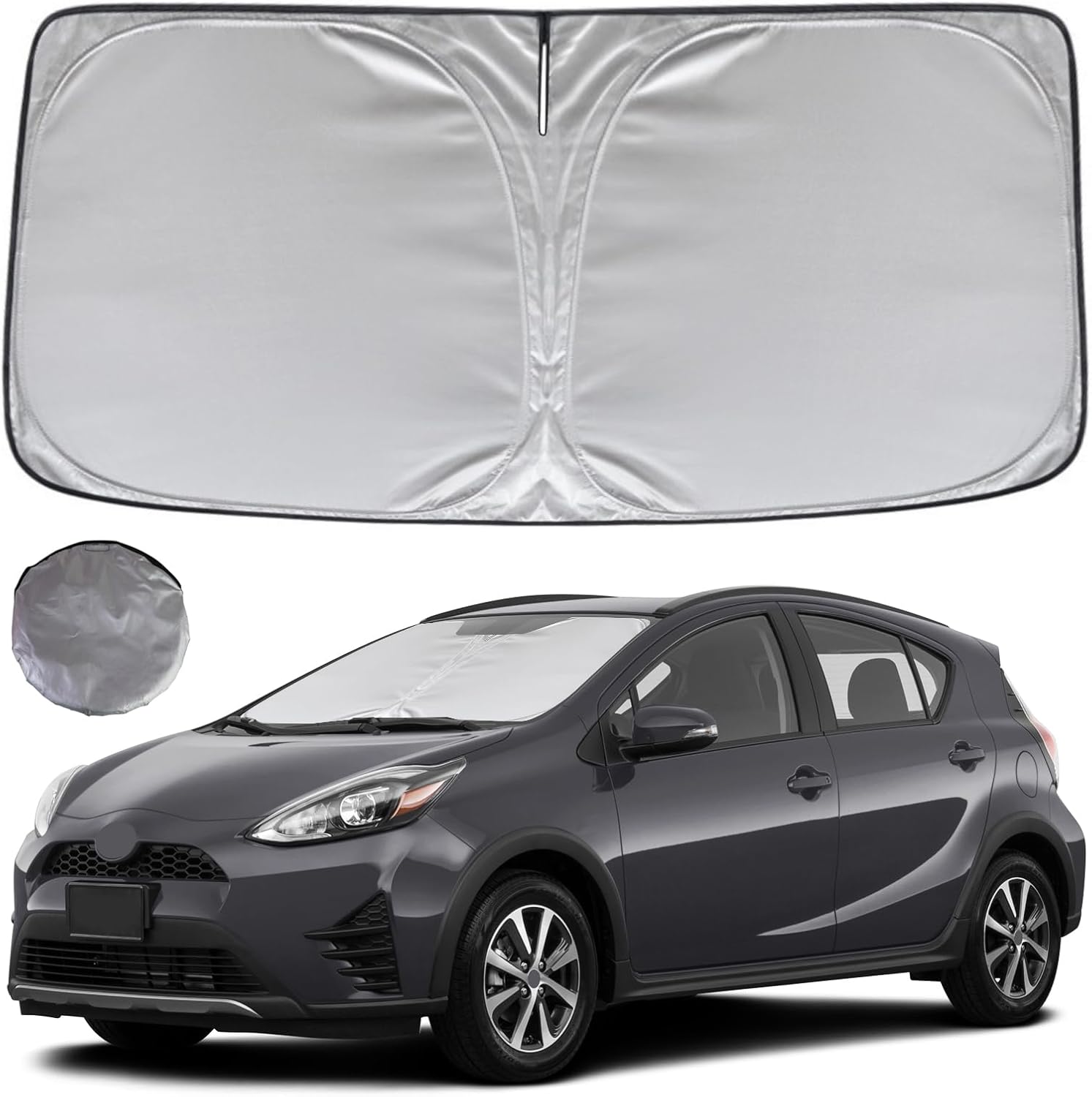 - KAYZT windshield sun shade is precise custom fit for 2012 2012 2013 2014 2015 2016 2017 2018 2019 Toyota Prius C, Thoroughly covers every corner of the windshield, Tailored to accommodate rear view mirror, Ensuring a seamless and snug fit without obstruction, Must have car accessories for Prius C