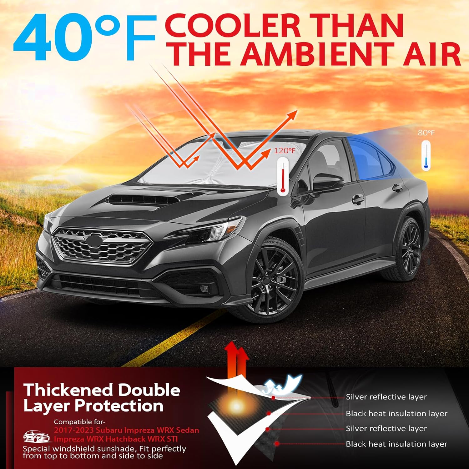 KAYZT Windshield Sun Shade for 2017-2023 Subaru Impreza WRX Sedan Impreza WRX Hatchback WRX STI Foldable Sunshade Front Window Custom Fit Car Accessories