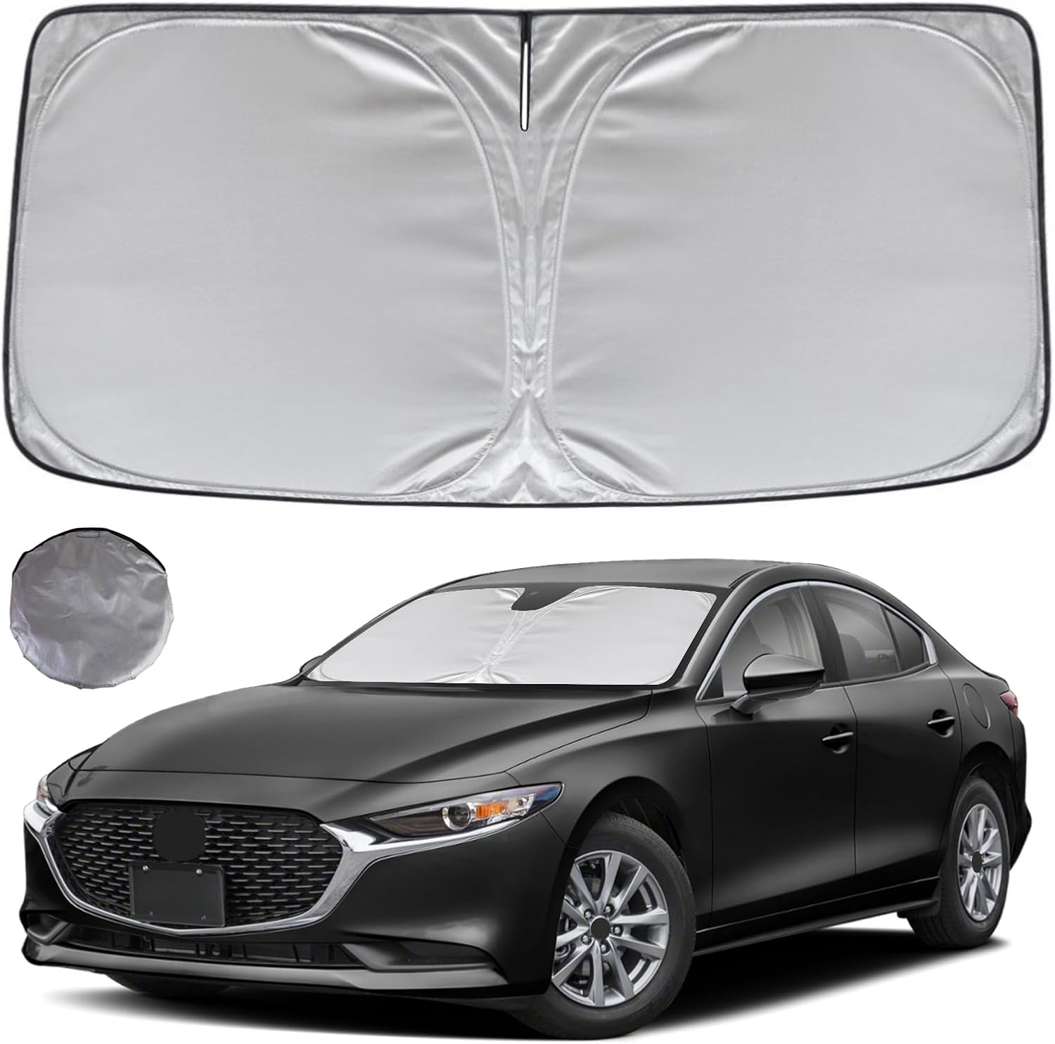 - KAYZT windshield sun shade is precise custom fit for 2019 2020 2021 2022 2023 2024 2025 2026 Mazda 3 Hatchback Sedan, Thoroughly covers every corner of the windshield, Tailored to accommodate rear view mirror, Ensuring a seamless and snug fit without obstruction, Must have car accessories for Mazda 3
