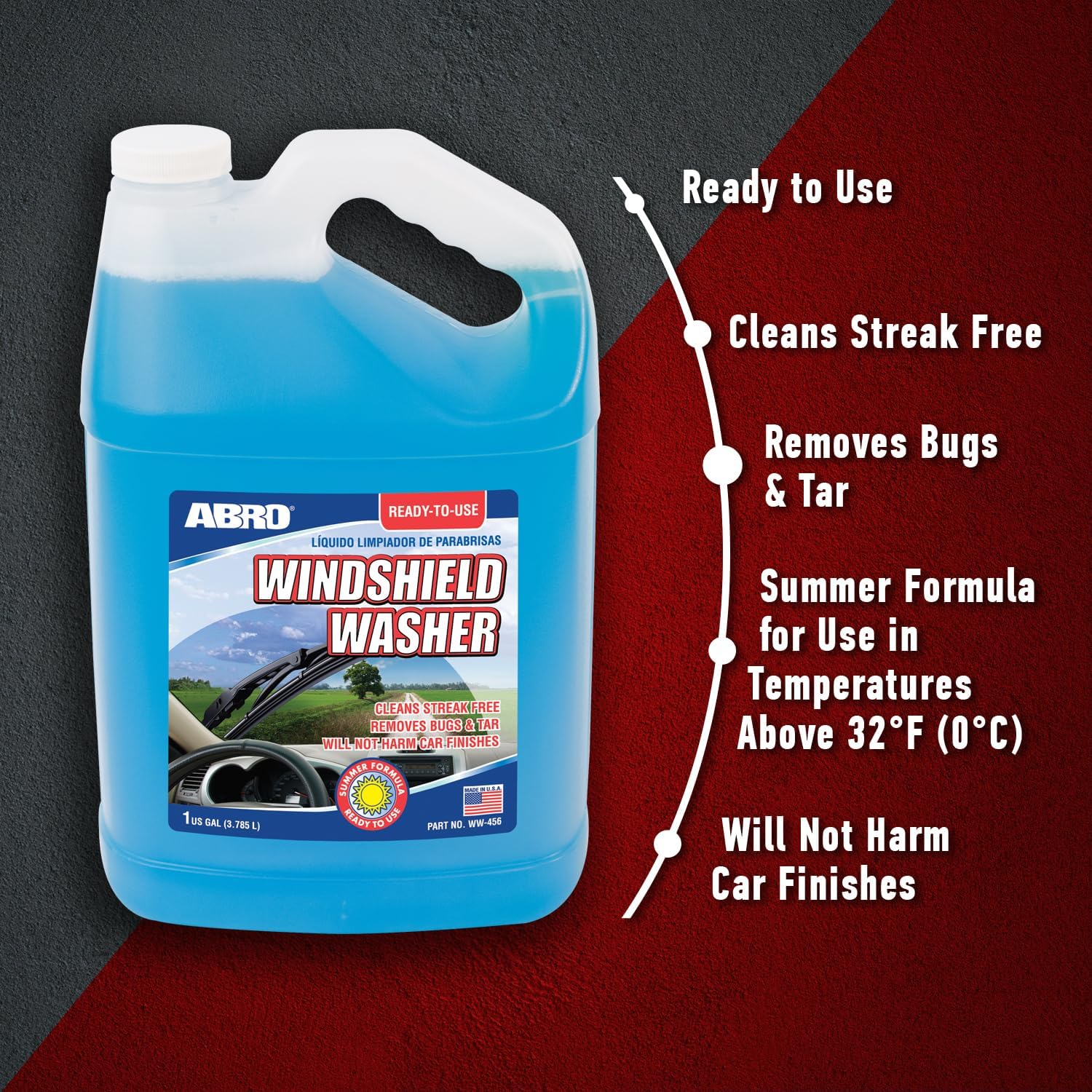- EFFORTLESS CLEANING: Enjoy hassle-free maintenance with ABRO's pre-mixed windshield wiper fluid formula, saving you time and effort in preparing the solution for streak-free clarity.