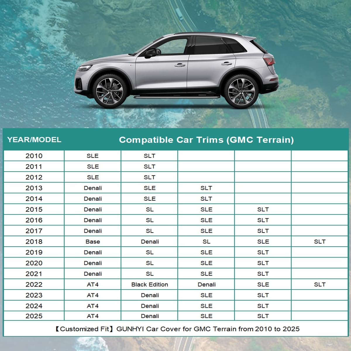 - 【Compatible with】This Full Car Cover Custom fit for GMC Terrain from 2010 to 2025. Comes with a microfiber towel that you can use to clean your car, because if there is sand on the surface of the car before use, it may damage the paint.