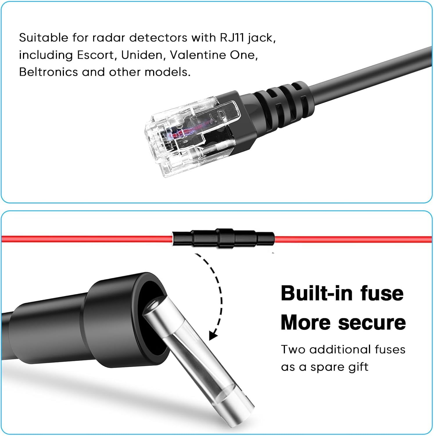 - Our power cord hardwired kit is suitable for radar detectors with RJ-11 telephone style jack