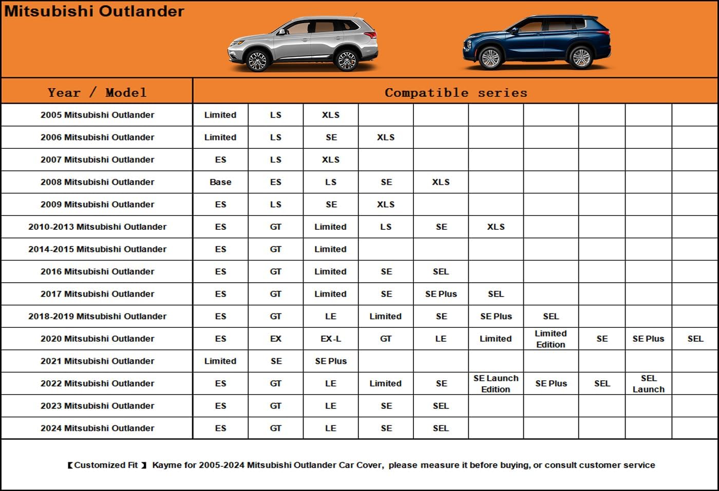 - ăSuitable forăâ Custom fit for Mitsubishi Outlander (2005-2025). Come with a large enough portable bag to store your cover when you do not use
