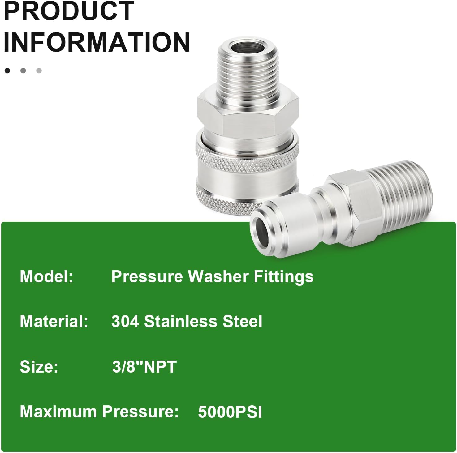 TAISHER 12PCS 304 Stainless Steel Pressure Washer Adapter Kit, Quick Connect Fittings,3/8" Male