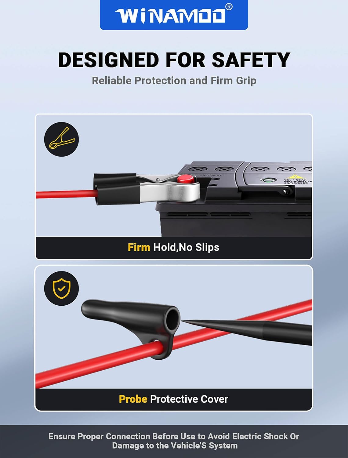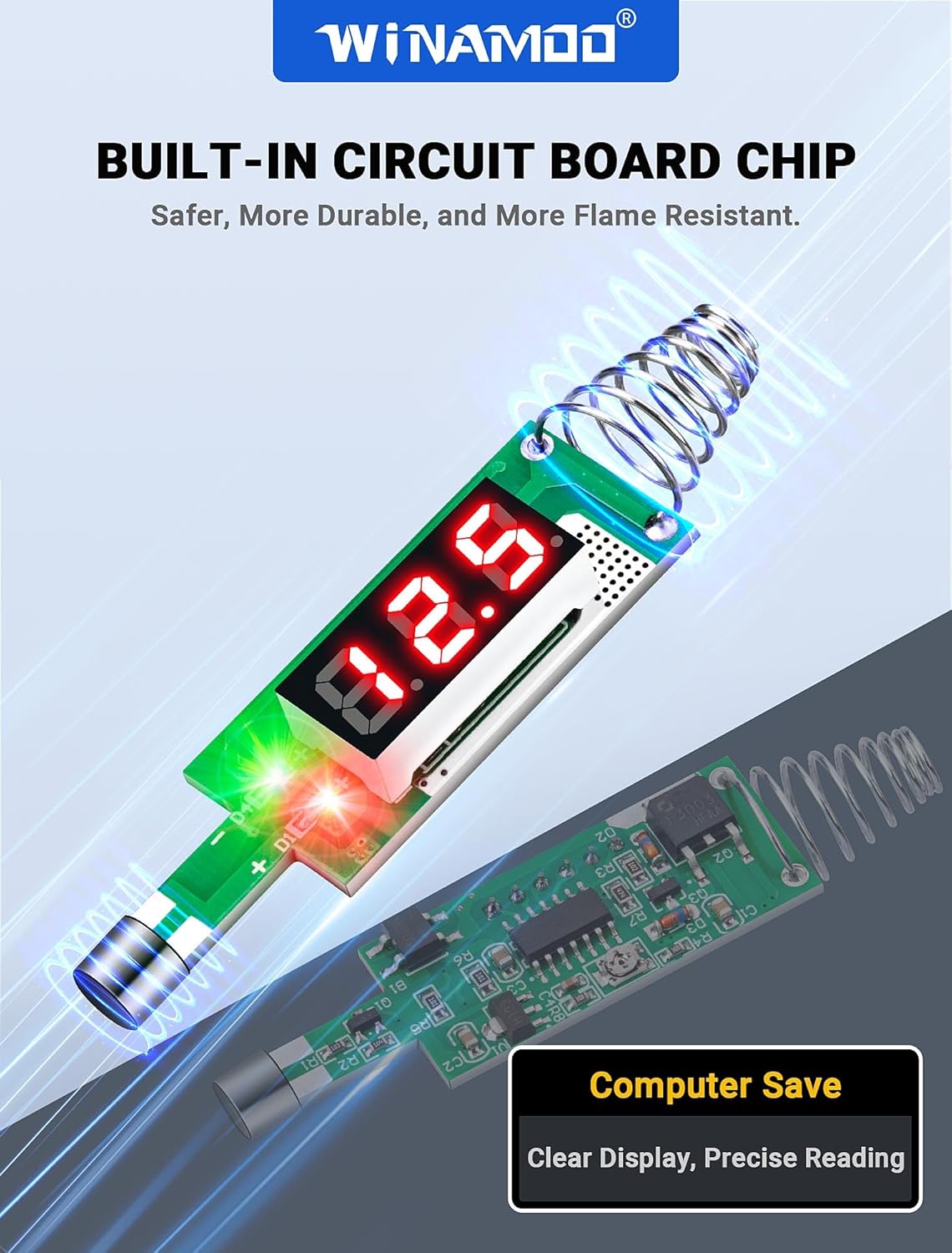 - 【Clear Digital Display & Readouts】: WINAMOO automotive circuit tester with a highly clear LED digital display for voltage readings, 0.1V resolution with ±0.2V accuracy gives you clearly visible digital readouts. Compared with LCD lights, this light tester is not affected by the brightness of light, so that be clearly read in daytime or dark areas.