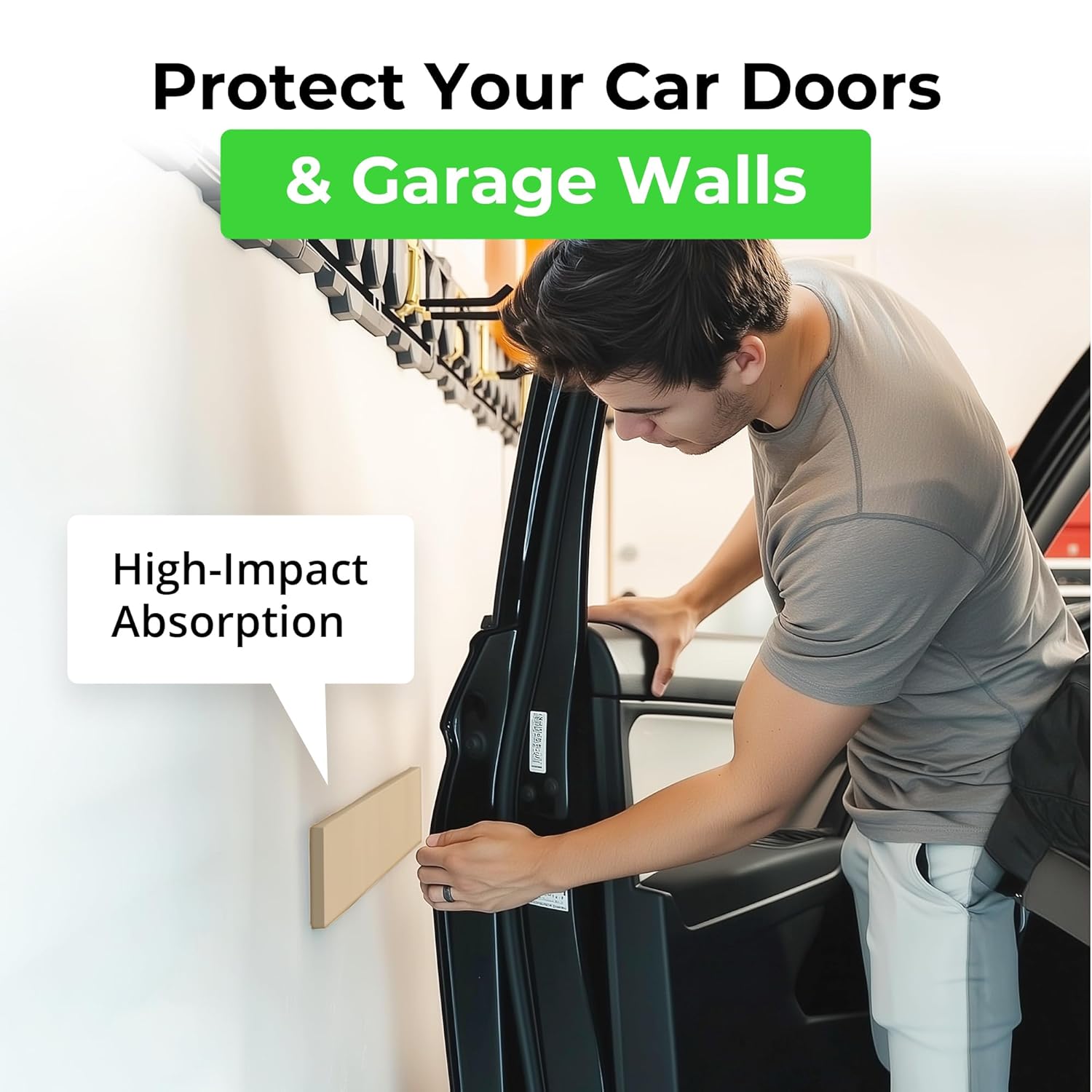 - Provides High-Impact Absorption: Park your car with confidence using these 4-packs of oil- and water-resistant, crash-resistant foam rubber protector panels; no longer worry about denting your bumper or dinging your car door; keep walls damage free from bicycles, door knobs, tools, lawn mowers and other garage equipment