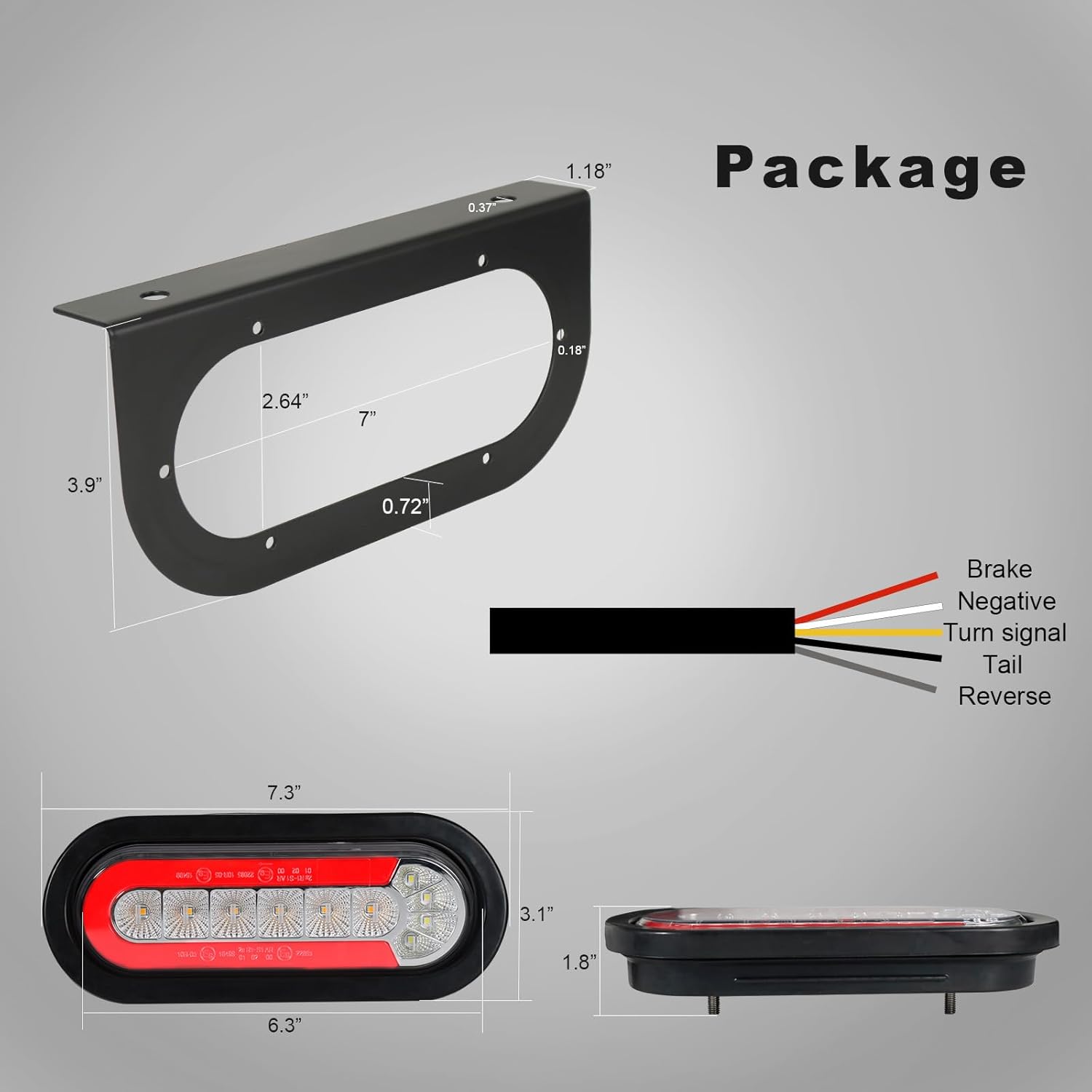 Agrieyes Trailer Lights with Bracket, Oval LED Trailer Lights with Sequential Turn Signal, Tail, Brake, Reverse, Submersible Boat Trailer Light kit for Trucks, Tractor, Utility Trailer, RV, Caravan