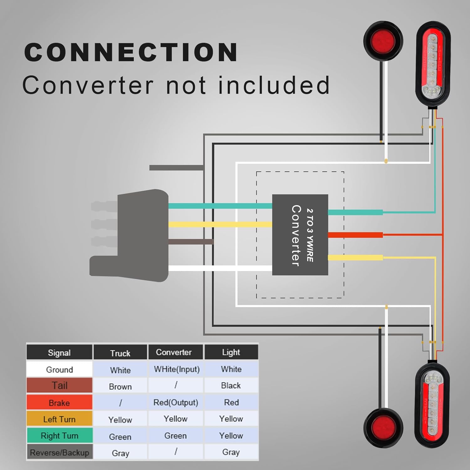 - 【FEATURES】Includes tail lights, brake lights, turn signals, reverse/backup lights, and side lights; mimics truck signals to ensure other drivers can see and anticipate the trailer's movements