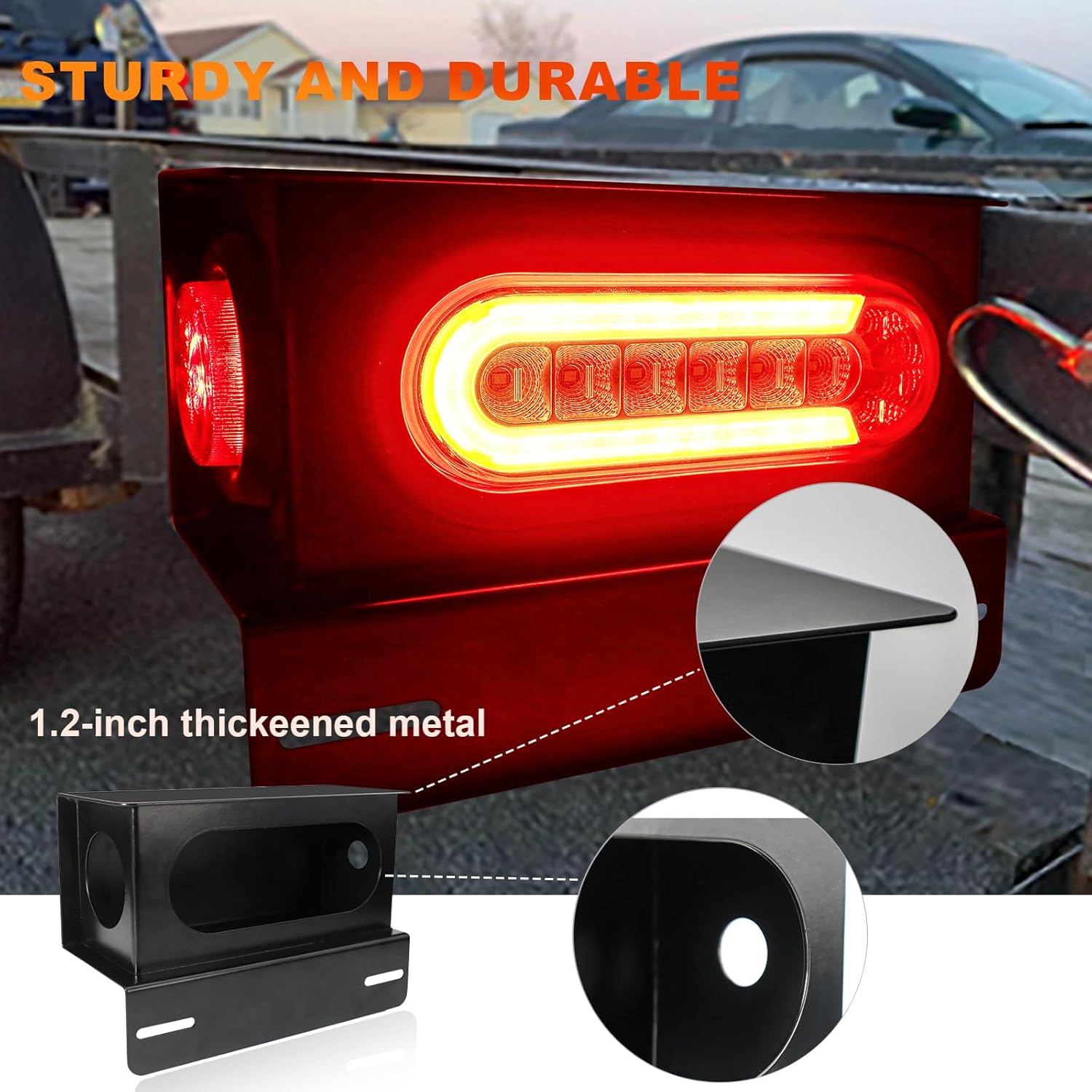 - 【DURABILITY】The AG-T012 series trailer lights come in a robust enclosure crafted from 3mm thick high-strength metal material, ensuring durability; coated with high-adhesion paint to prevent rust; box dimensions are 8.8 x 3.8 x 3.9 inches; left-side enclosure includes a hole for license plate installation