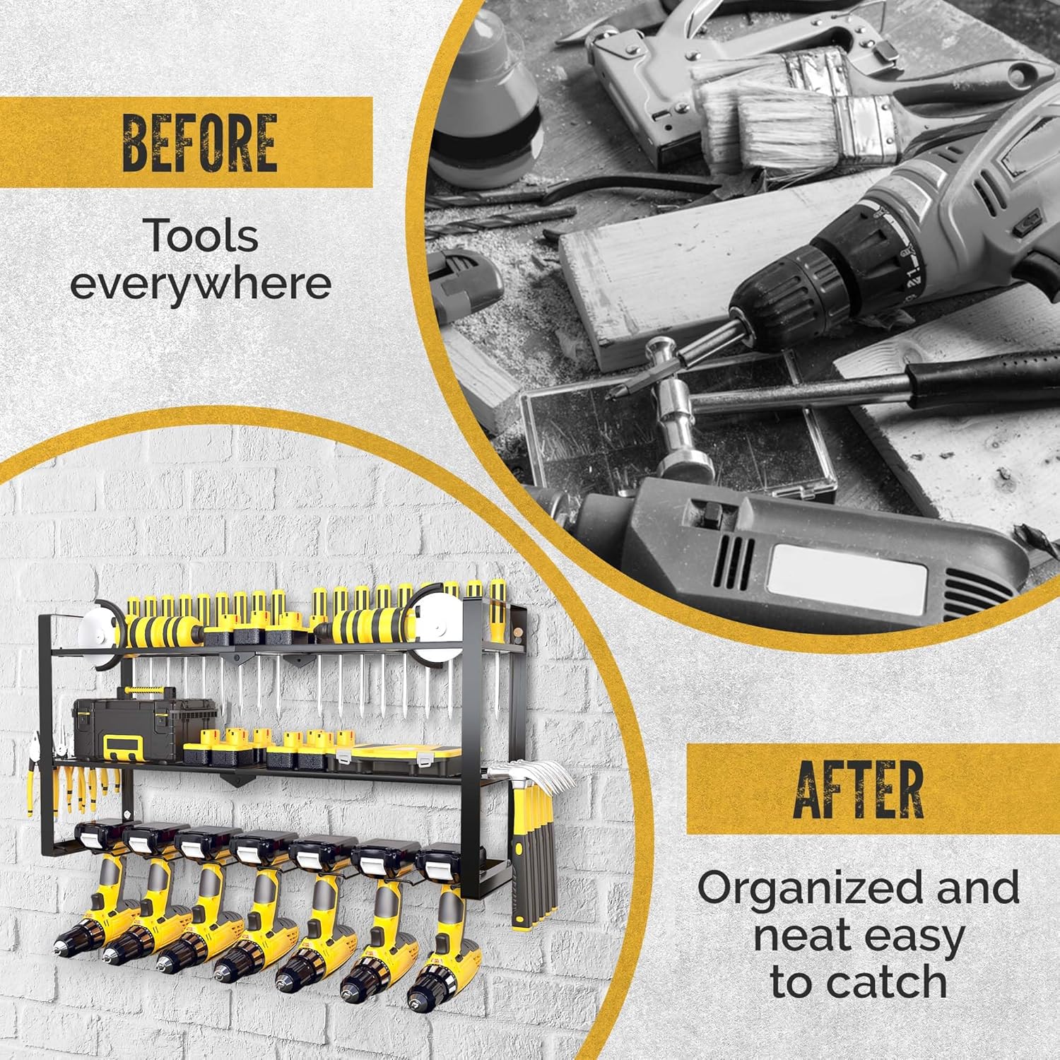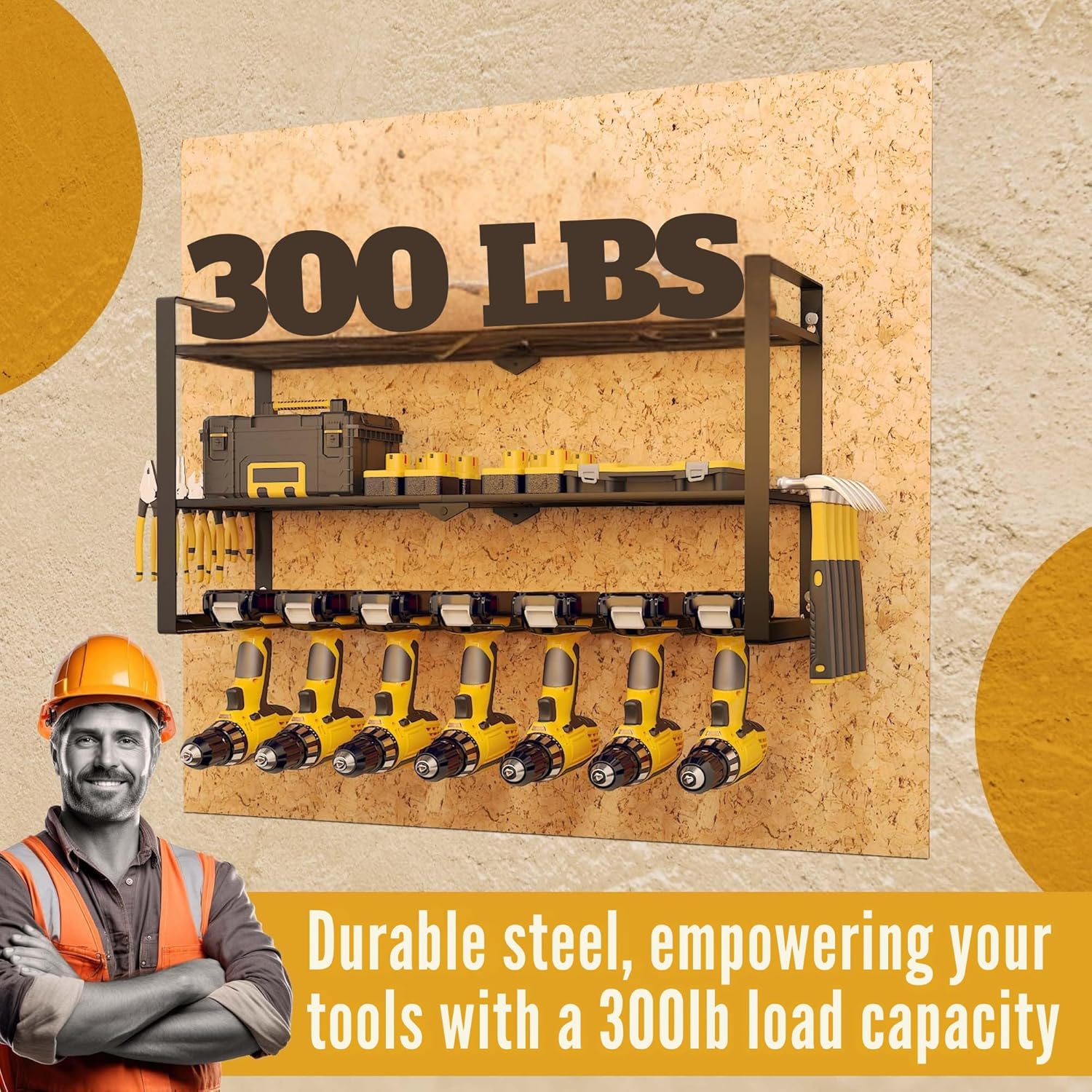 - ππππππ πππ πππππππππ ππππππ: Constructed from heavy-duty alloy steel, this Power Tool Storage Rack is built to last. It features superb welding that allows it to support up to 190 lbs, ensuring it remains reliable, eliminating any concerns about the rack detaching from the wall.