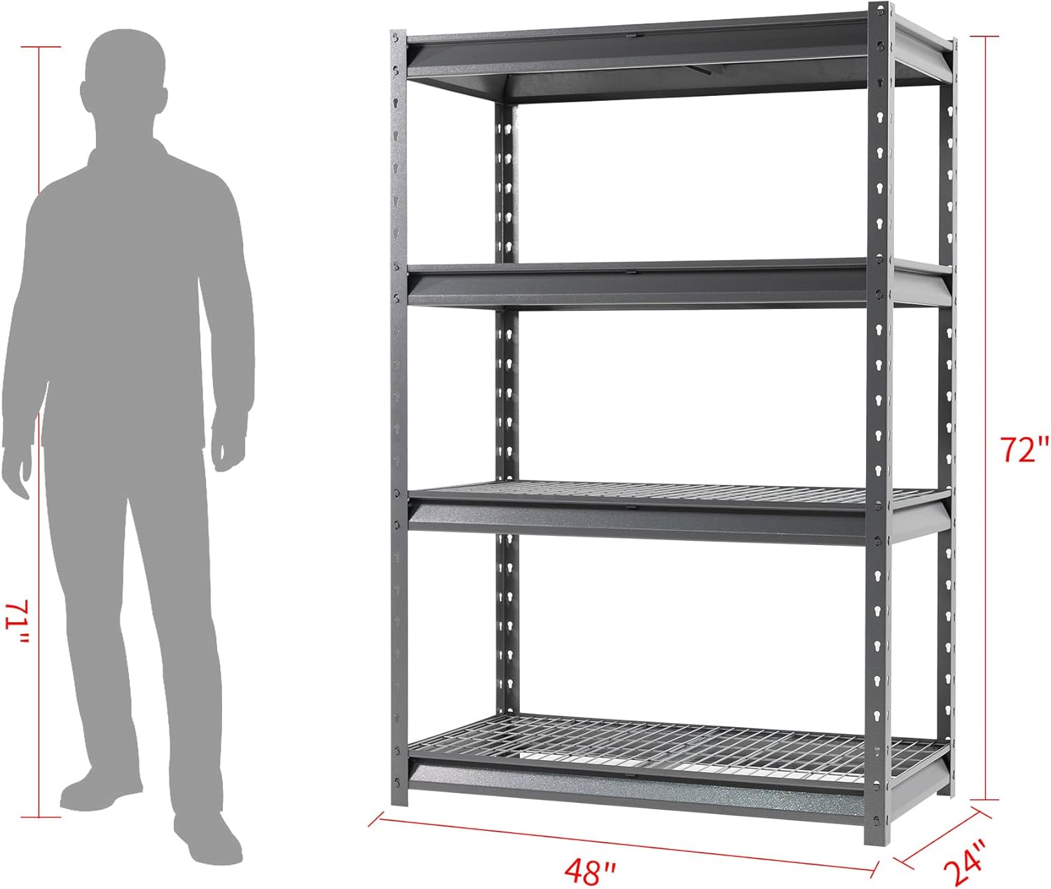 The Atlas 48" W Heavy Duty Garage Shelving Unit Load 12000 Lbs, 4-Tier Metal Shelves for Storage, Adjustable All Steel Industrial Shelf, 48" W x 24" D x 72" H, Grey