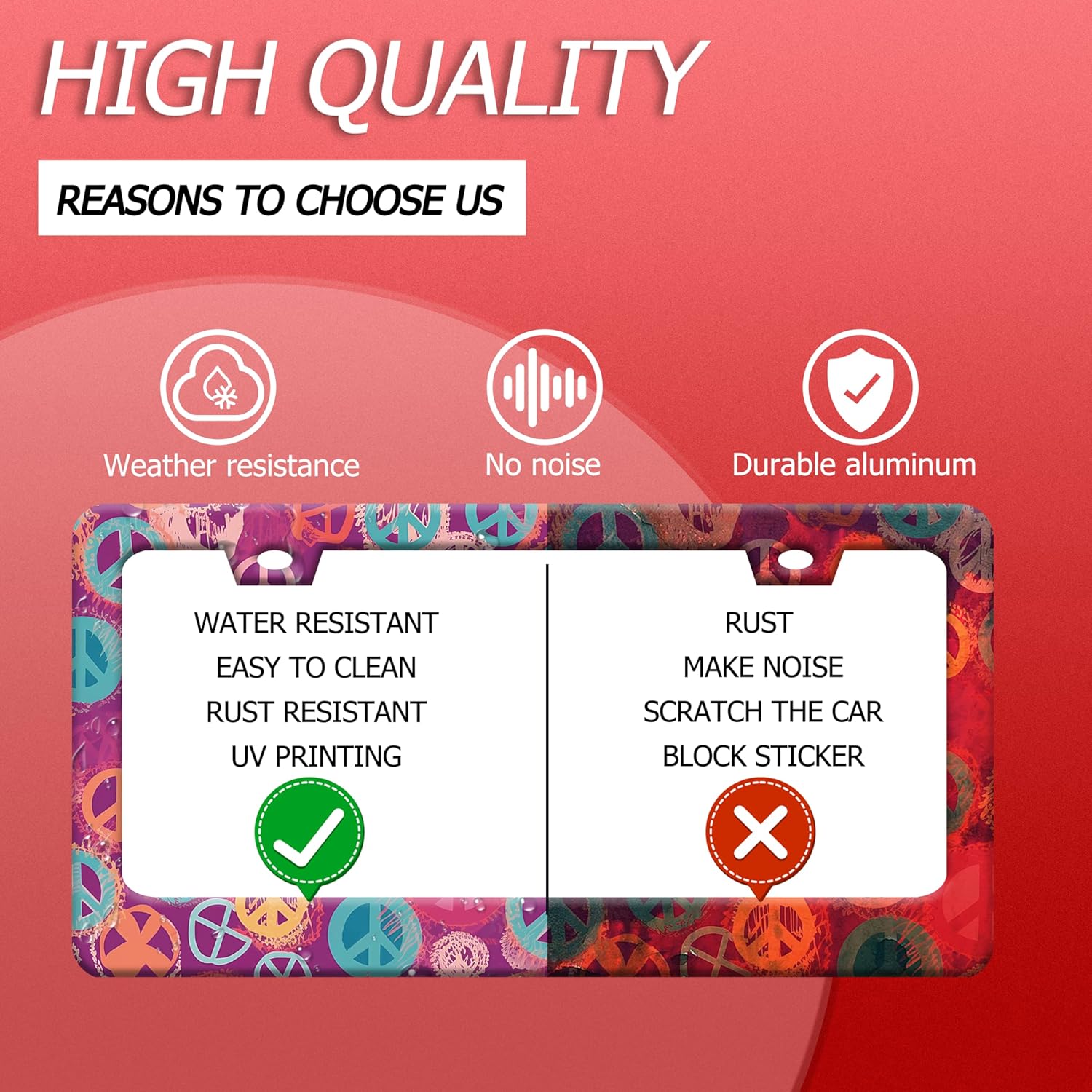 - 【Excellent Printing Concept】Use Advanced digital printing Protects license plate frames ,Whether it's a car wash, heavy rain or hot weather, it still looks brand new,Let your car still be unique and stylish while driving on the road.