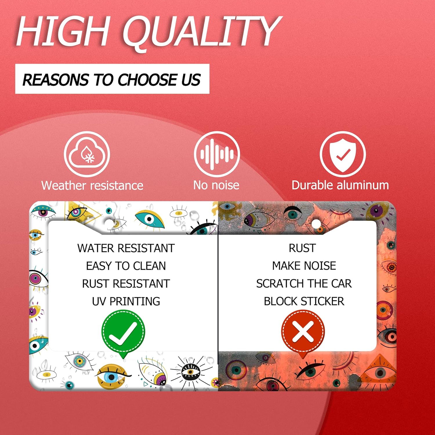 Evil Eye License Plate Frame Colorful License Plate Frames Stainless Steel Accessories Cars Decor with 2 Holes and Screws Fits Standard US CA Vehicles Size 12.2 x 6 Inches