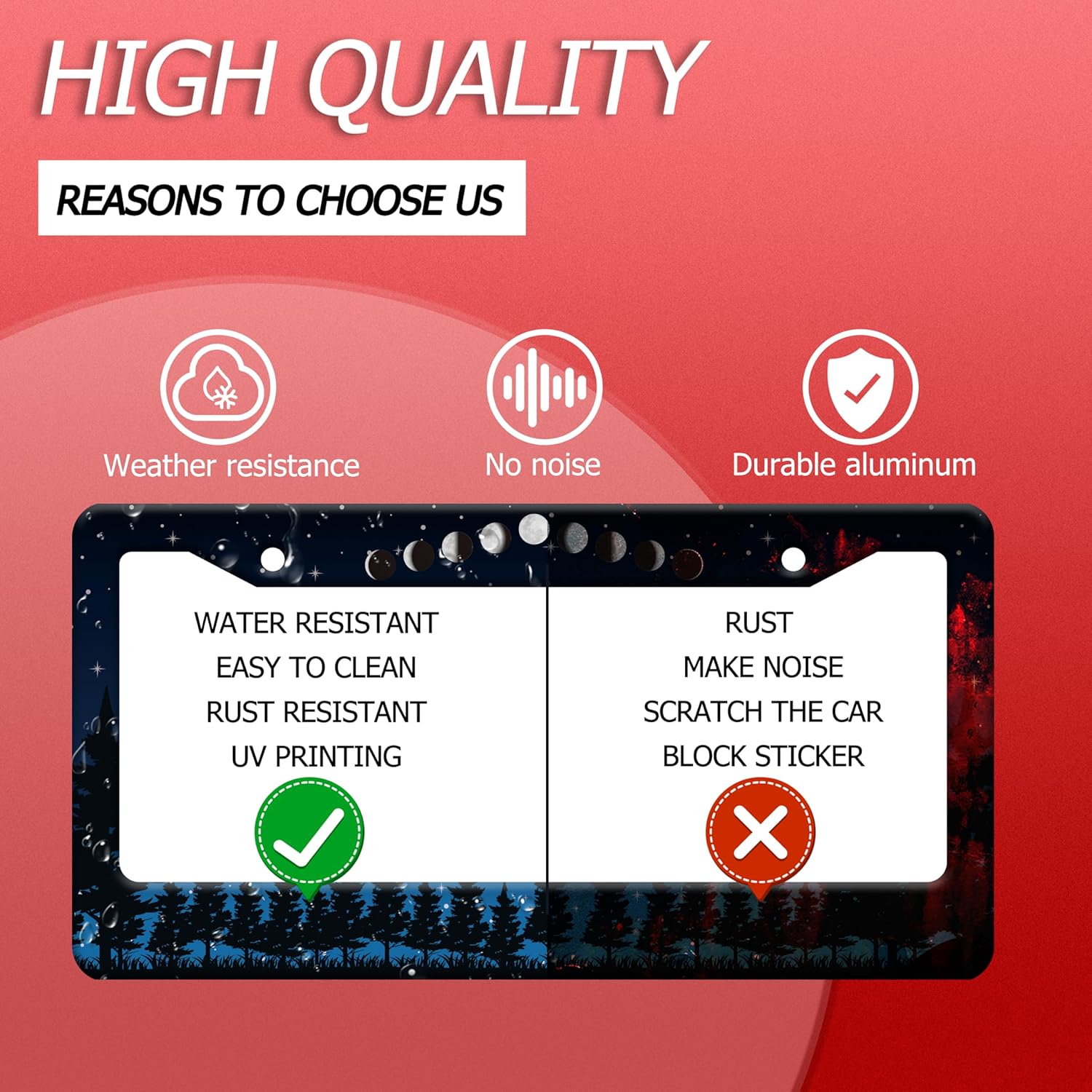 - 【Excellent Printing Concept】Use Advanced digital printing Protects license plate frames ,Whether it's a car wash, heavy rain or hot weather, it still looks brand new,Let your car still be unique and stylish while driving on the road.