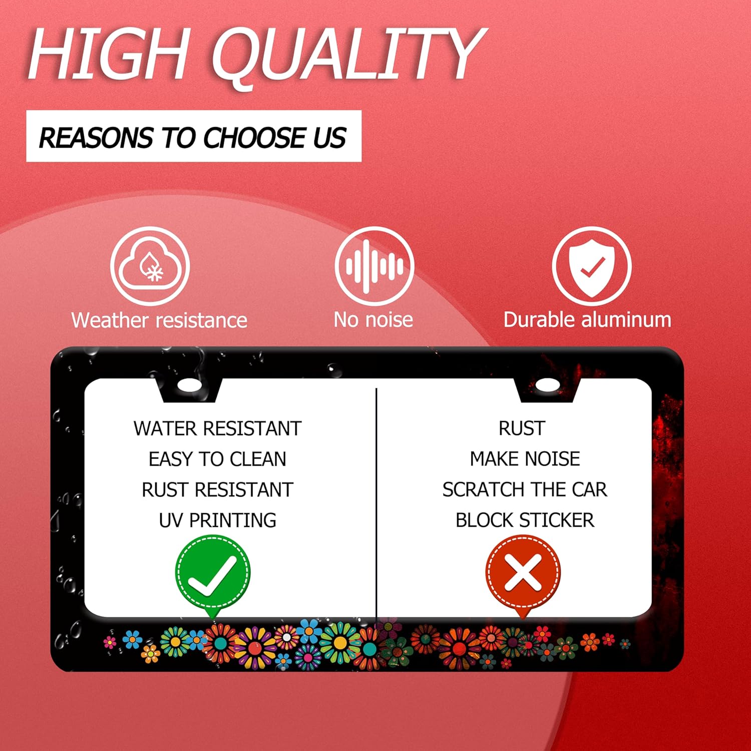 - 【Excellent Printing Concept】Use Advanced digital printing Protects license plate frames ,Whether it's a car wash, heavy rain or hot weather, it still looks brand new,Let your car still be unique and stylish while driving on the road.