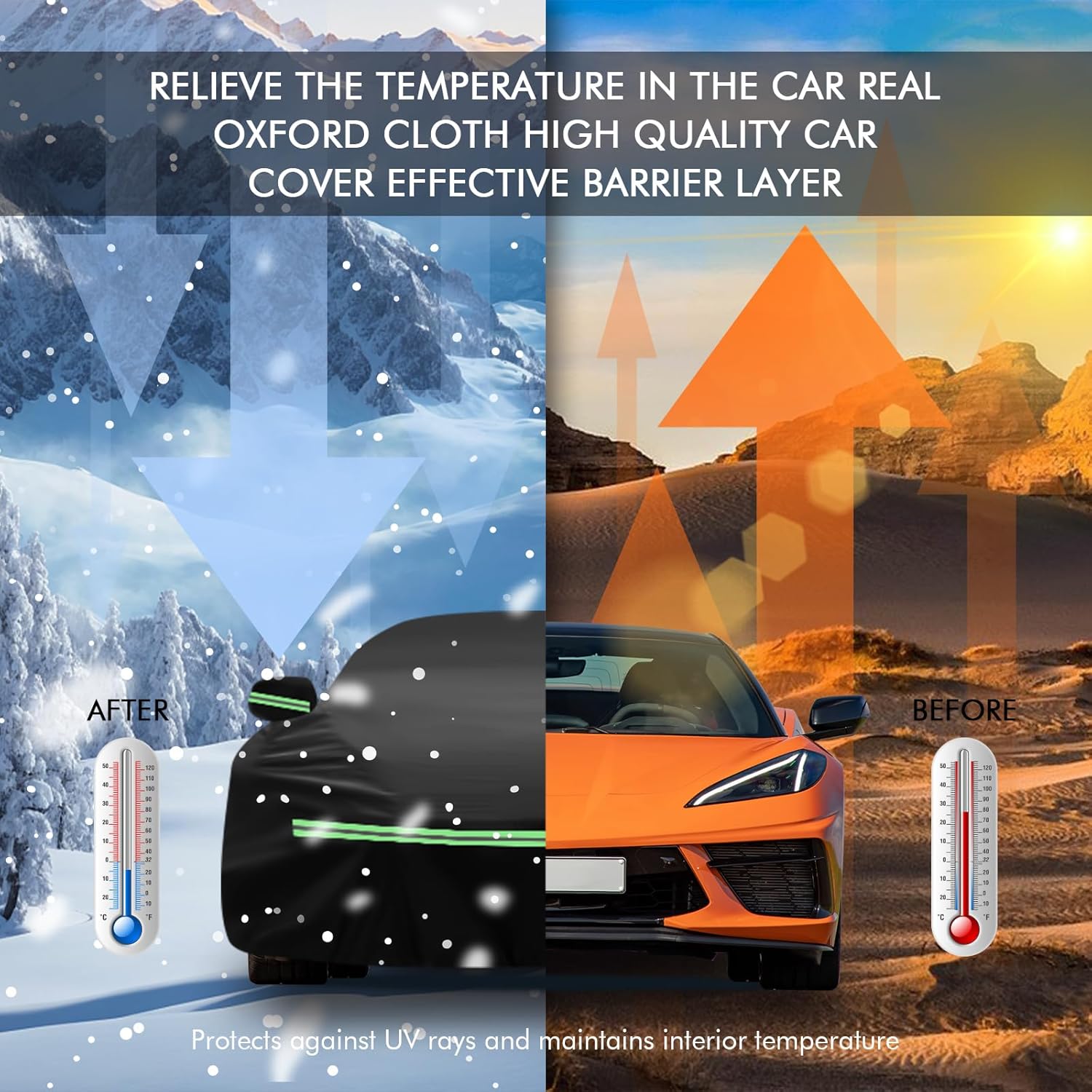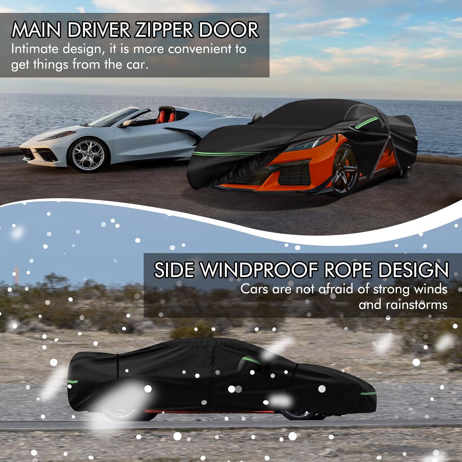for Corvette 2020-2023 C8 Car Cover 210D Outdoor Waterproof UV Protection, with Cotton Layer, Zipper Door, Reflective Strip, Storage Bag, for Chevy C8