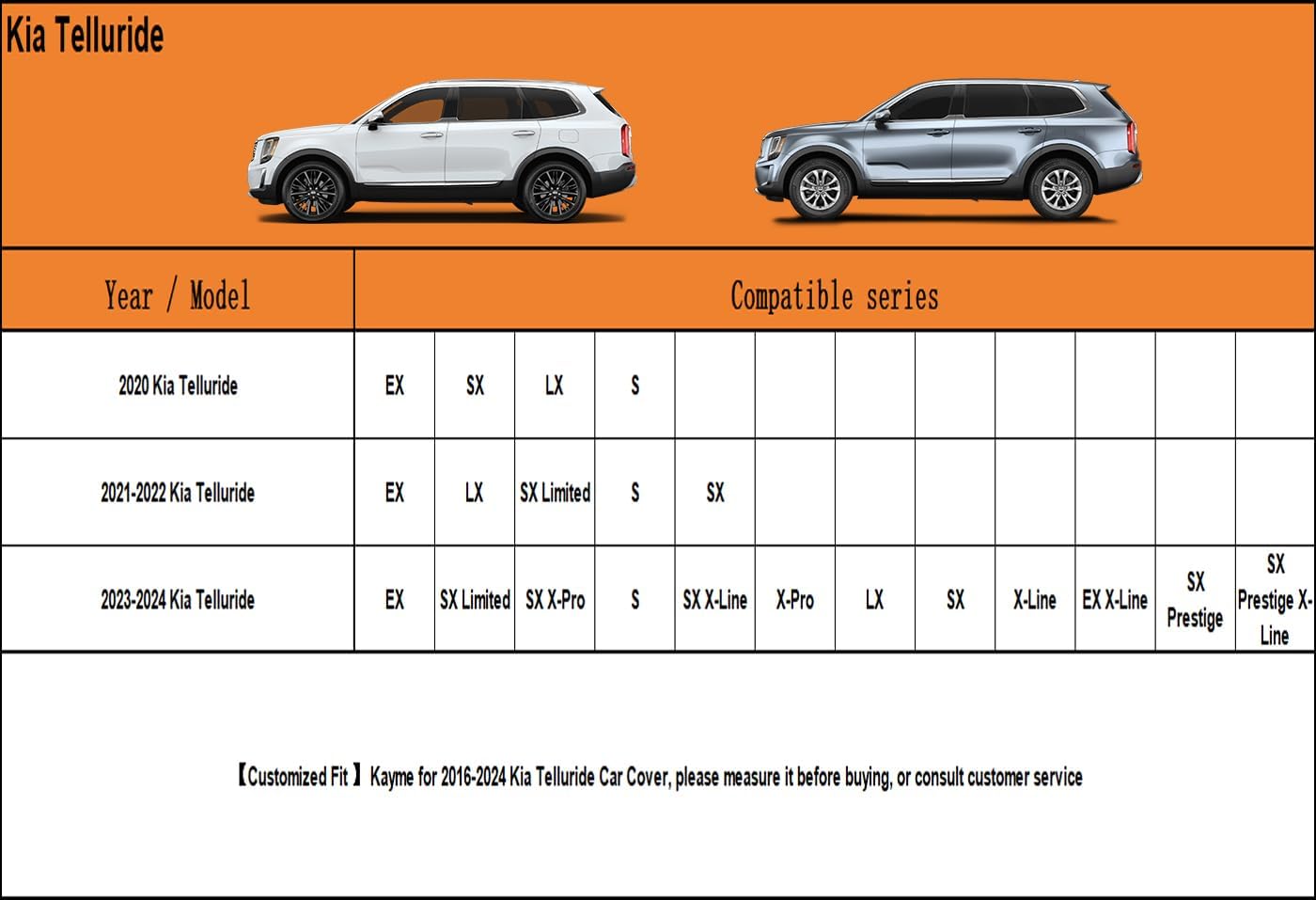 - ăSuitable forăâ Custom fit for Kia Telluride (2016-2025) . Come with a large enough portable bag to store your cover when you do not use