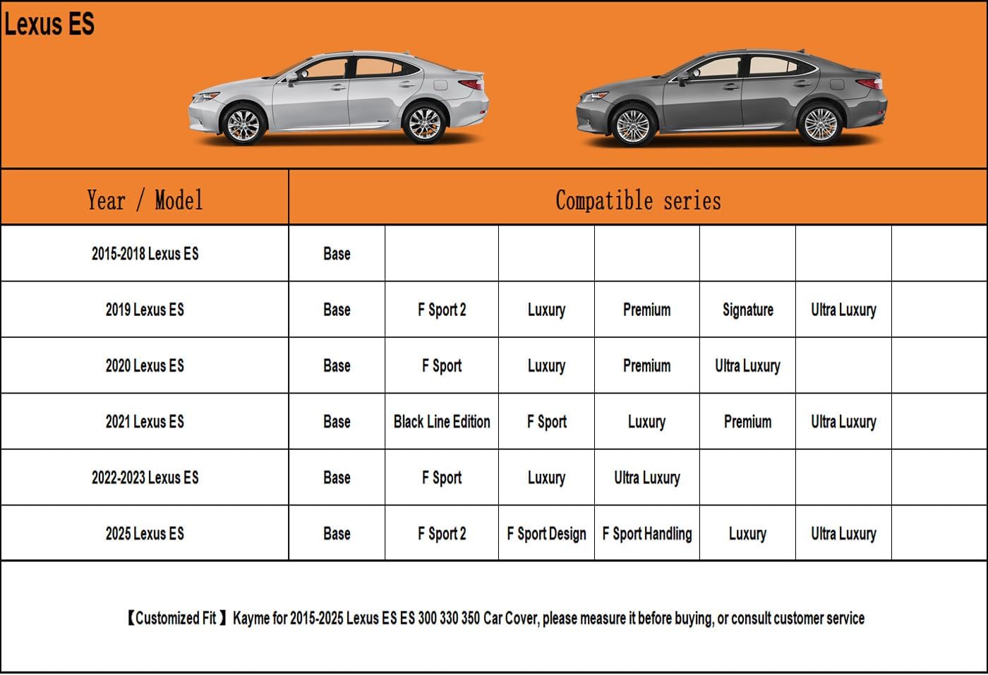 - ăSuitable forăâ Custom fit for Lexus Lexus ES ES300 ES330 ES350 ES300h (2015-2025ïŒ. Come with a large enough portable bag to store your cover when you do not use