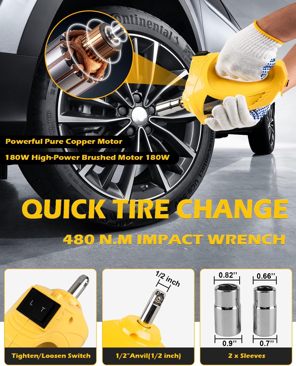 - ăMulti-purposeăis not only a high-performance electric hydraulic jack, but also equips you with an electric wrench with a maximum torque of 480 N.M, a 25-cylinder inflator pump, and a quadruple high-efficiency LED light bead, which makes it easy to change a tire no matter if you encounter the wilderness or a pitch-black night.