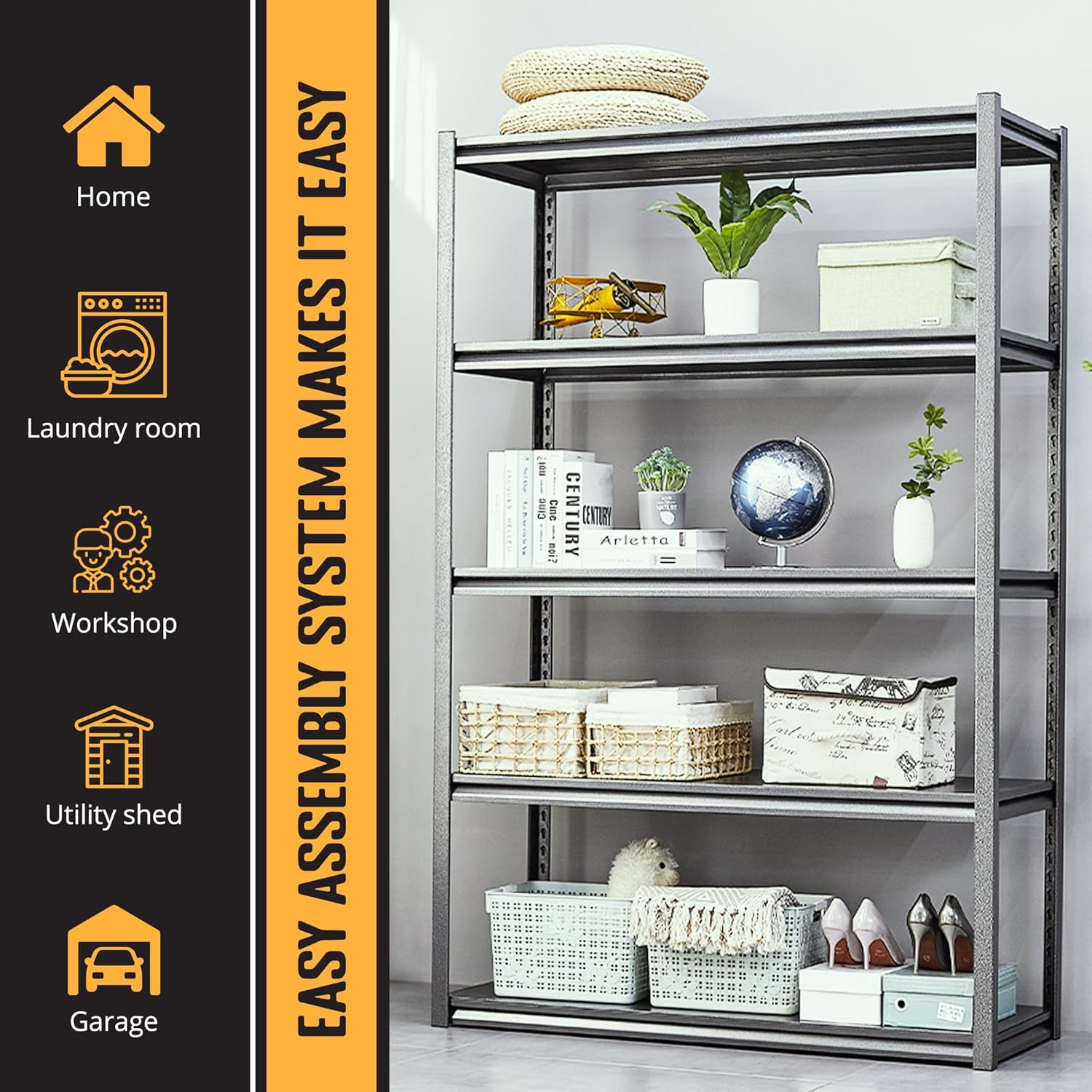 Rigma 5 Tier Garage Shelf, Heavy Duty Steel Shelving Unit, Adjustable Metal Multi-use Storage Rack, Shelves for Garage, Basement, and Industrial Warehouse Or Office (47" W X 20" D X 72" H 5-Tier)