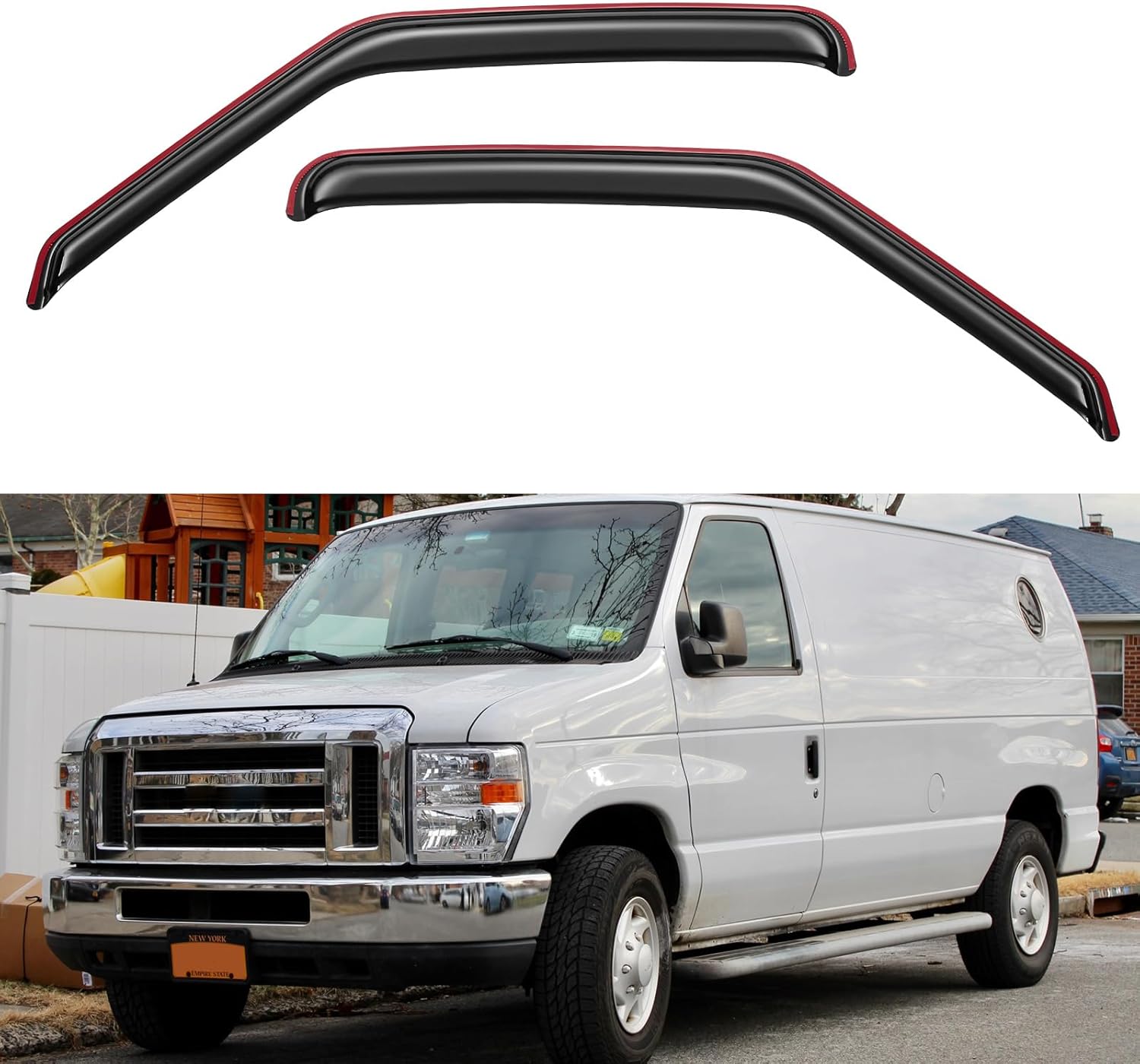 - 【Perfect Fit】 YQAUTEC in-Channel Window Visors Rain Guards Shield for 2007 2008 2009 2010 2011 2012 2013 2014 07 08 09 10 11 12 13 14 Ford E-150 E-250 E-350 E-450 Super Duty, Side Window Vent Wind Deflectors Visors Shades.