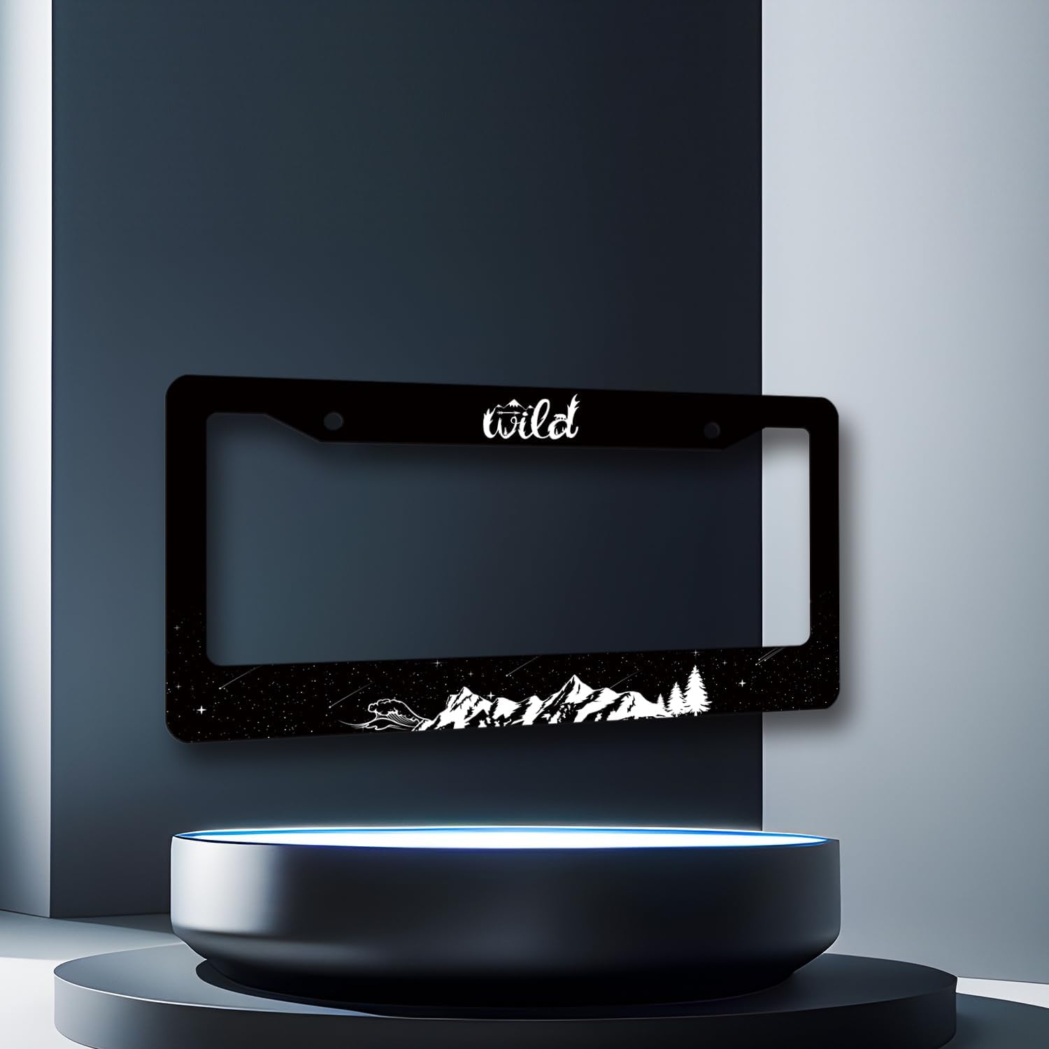 Mountains License Plate Frame Ocean Waves Forest Starry Sky License Plate Stainless Steel Mountain Car Accessory Funny License Plate Decoration Men Women Size 12.2" x 6.2" with Screw