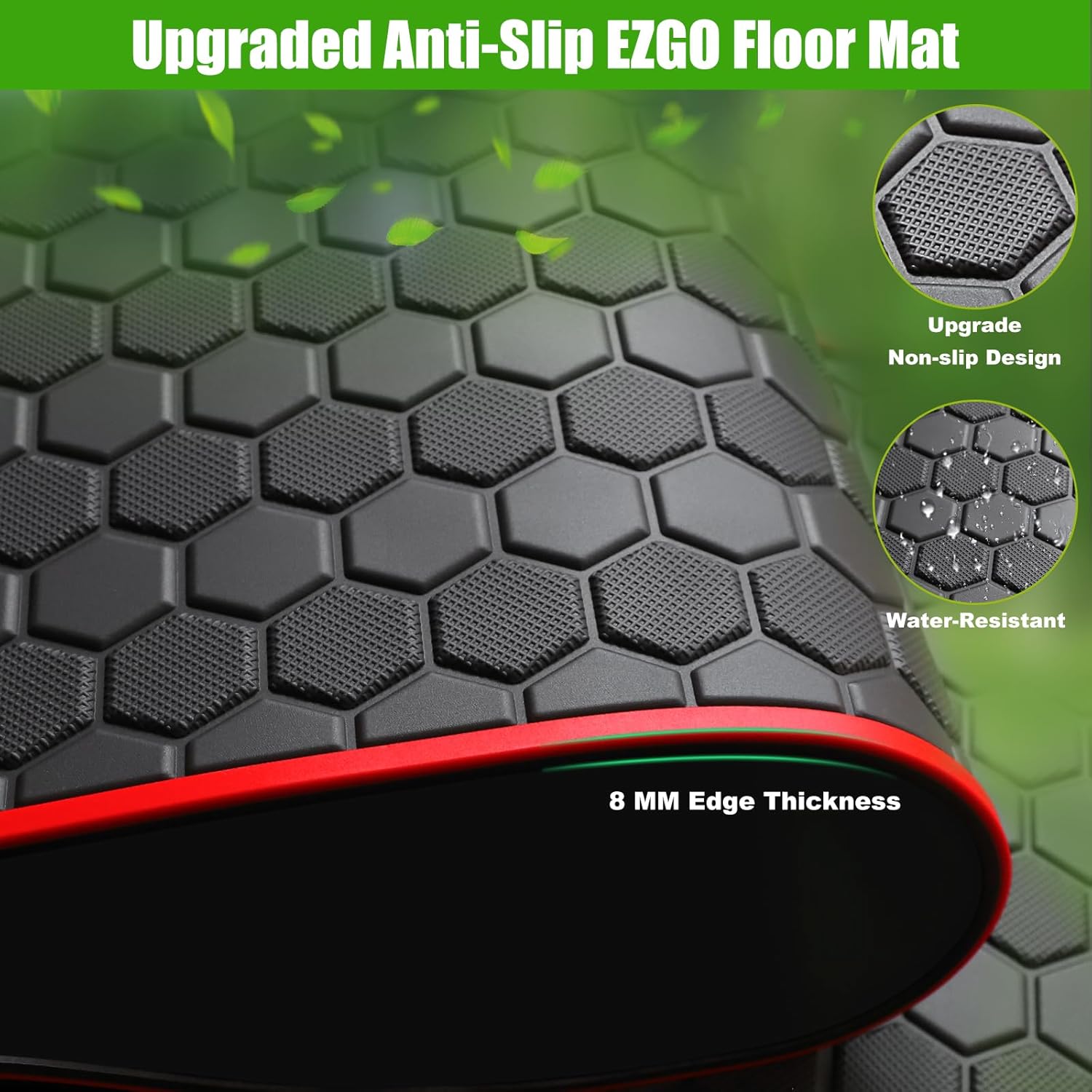EZGO TXT Golf Cart Full Coverage Floor Liner Mat, fits EZGO TXT (1994+), Valor(1994+), Express S4(2012-2020), Cushman Workhorse, EX1(2020), Thick Anti-Slip Rubber, Red Trim