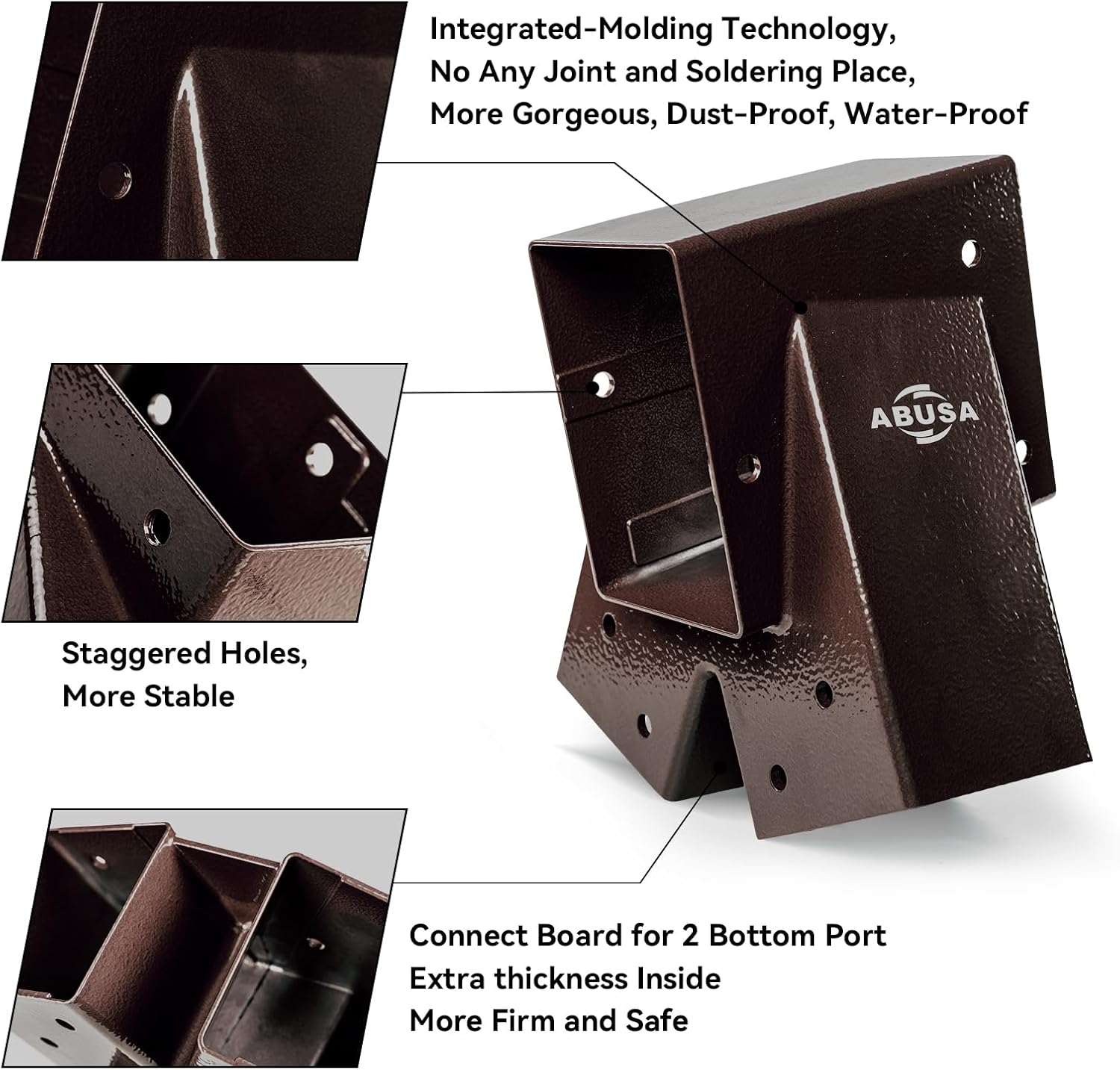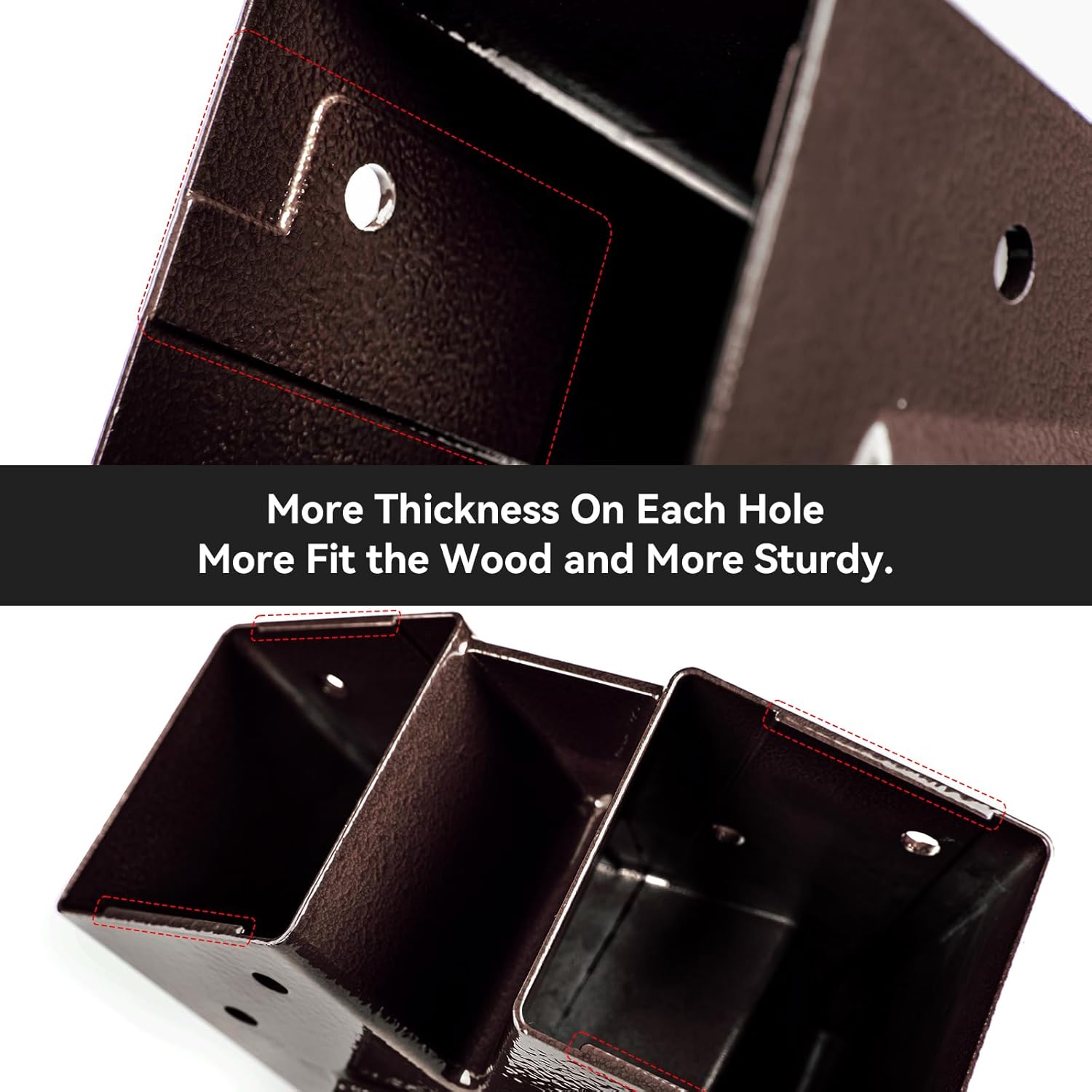 - Exclusive Structure Design---Add Extra Thickness at Some Places and Each Hole on the Brackets.Not Only Fit the Wood More Tight But Also Make the Structure More Sturdy and Safe. The Actual Size of the Top Beam is 5.5*3.5" ,while 3.5*3.5" for the 4 Support Legs.