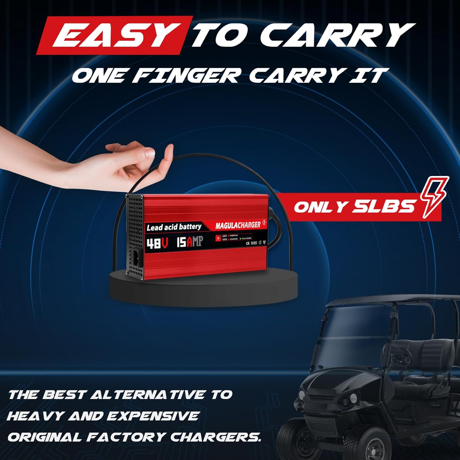 - CHARGING FASTER THAN LIGHTNING: Magula 48 Volt Golf Cart Battery Charger speed of the 15A golf cart charger is 1.5 times that of the 10A charger. You can spend less time charging your cart.Magula Smart Charger has built-in four-stage charging technology to ensure 100% battery life