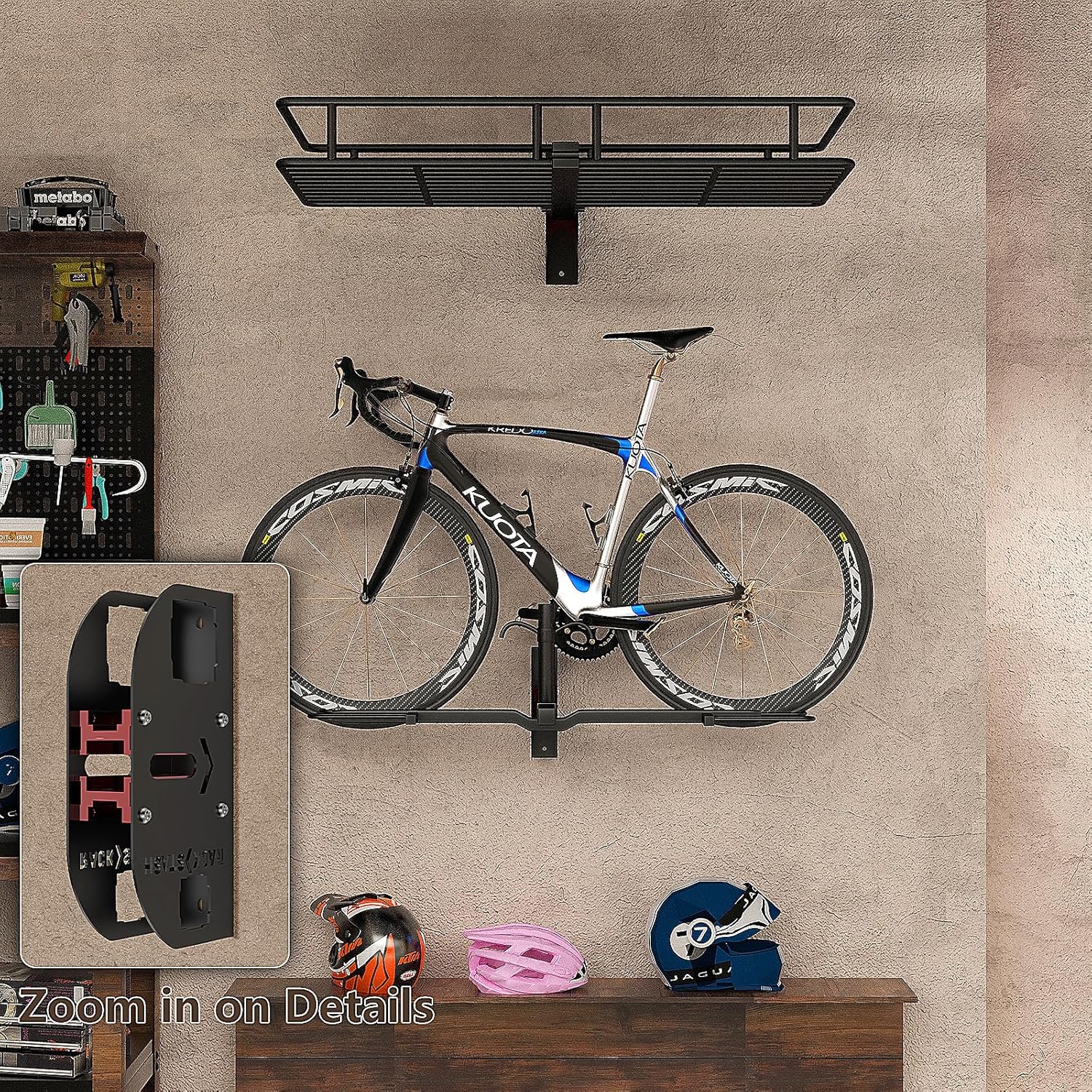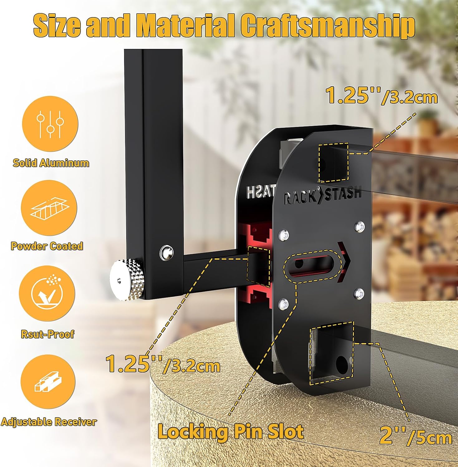 - Widely Applied : This wall mount hitch allows you to store your bike on the rack, saving garage space. It also serves as a workstation for bike maintenance, no more bending over while working. The side locking pin slot provide flexibility in installation at different heights, even on the ceiling.