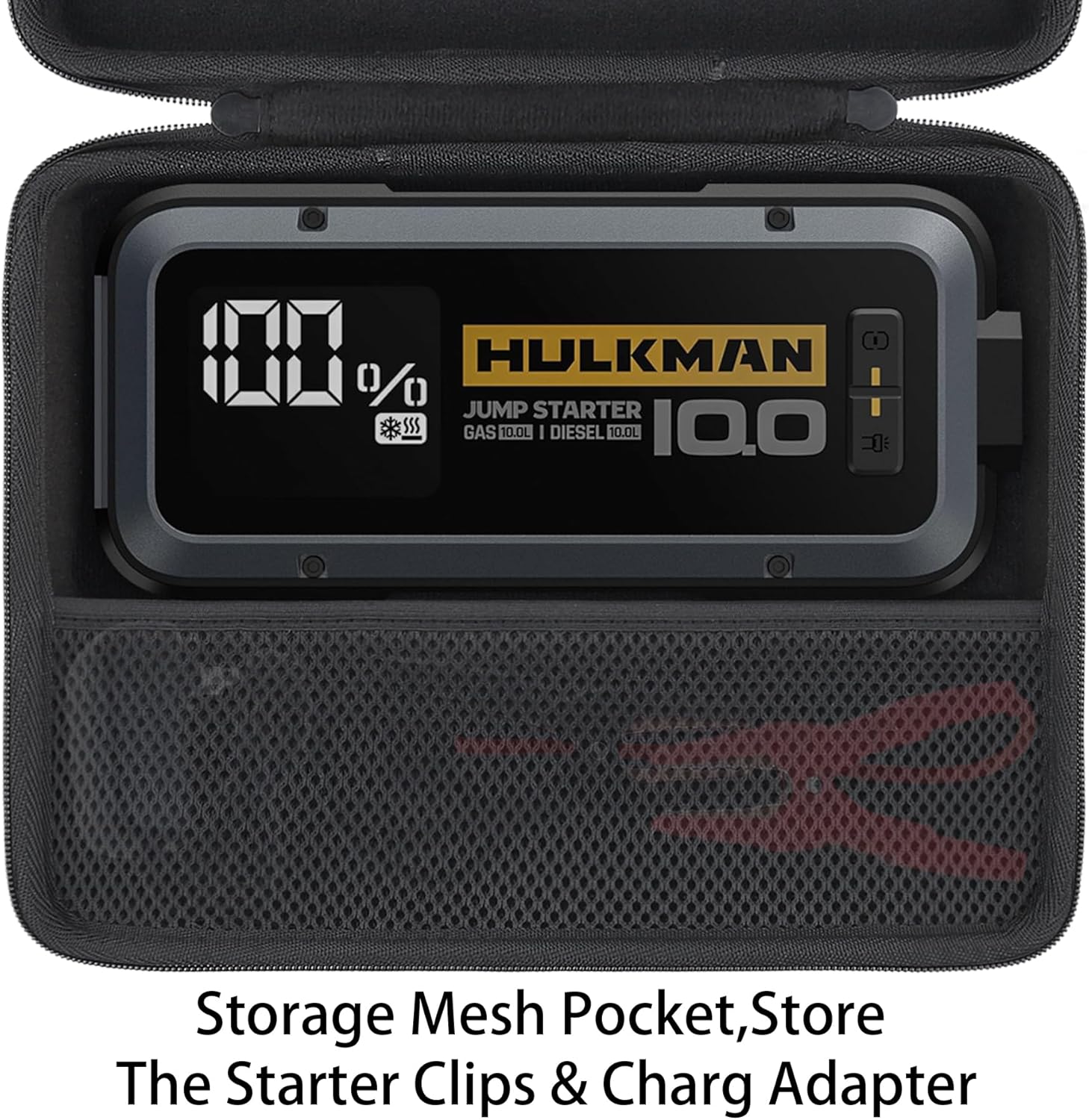 - Portable Car Starter Case:Suitable for storing hulkman alpha100 smart jump starter, keep your hulkman 100 jump starter safe while traveling, with dustproof, surface waterproof, drop-proof and so on. All-round protection for your hulkman alpha 10.0 jump starter.
