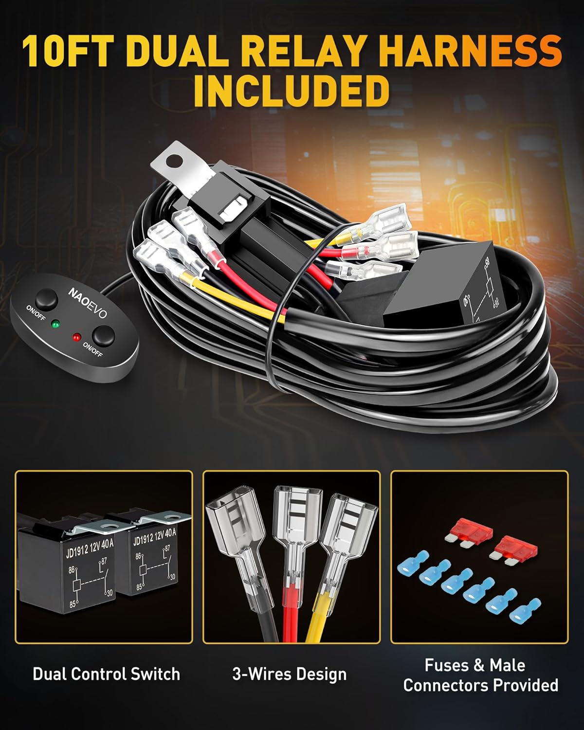 - [Superior Wiring Harness Supplied] - Our 12inch led light bar is very easy to install and connect, please check our pictures for specific installation and connection steps. In addition, we offer a 10ft 2 leads 3-wire design wiring harness which comes with 40A power relay and inline blade fuses. Providing you multiple protection and ease of use.