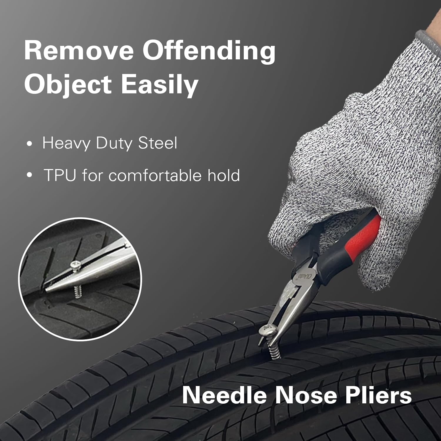 - 【Premium Quality】-- Our T-handle tools are made of the high strength rustless zinc alloy, can easily pierce the plugs and quickly finish the repair work. Tire repair strips of best natural rubber are equipped with airtight bag, providing excellent aging resistant performance. High quality zinc coated pliers remove offending objects easily.