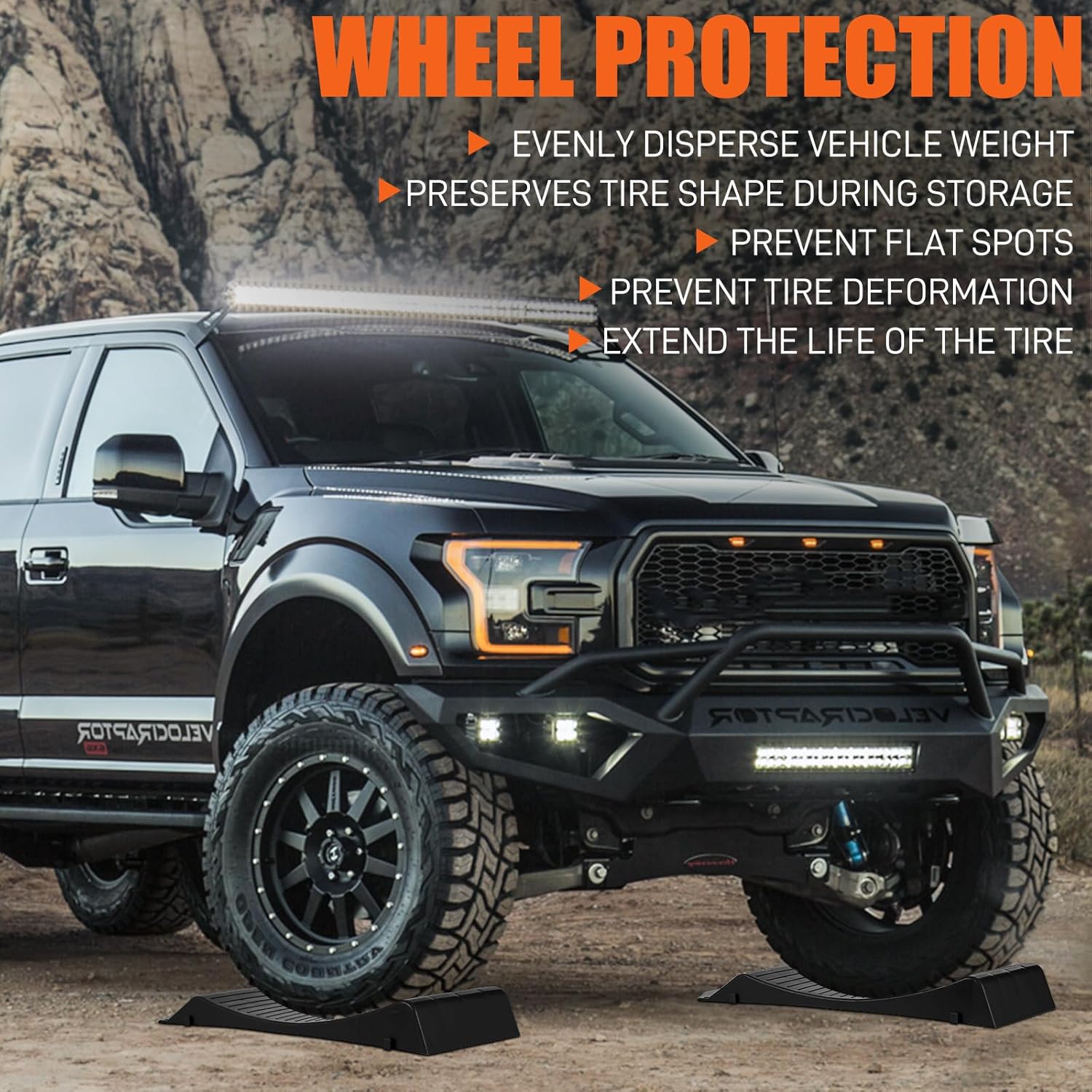 - 【Function】: Pickup truck ramp kit can evenly distribute the weight of your car, prevent tire leakage or deformation, facilitate long time storage of your vehicle, protect your tires and prevent flat spots