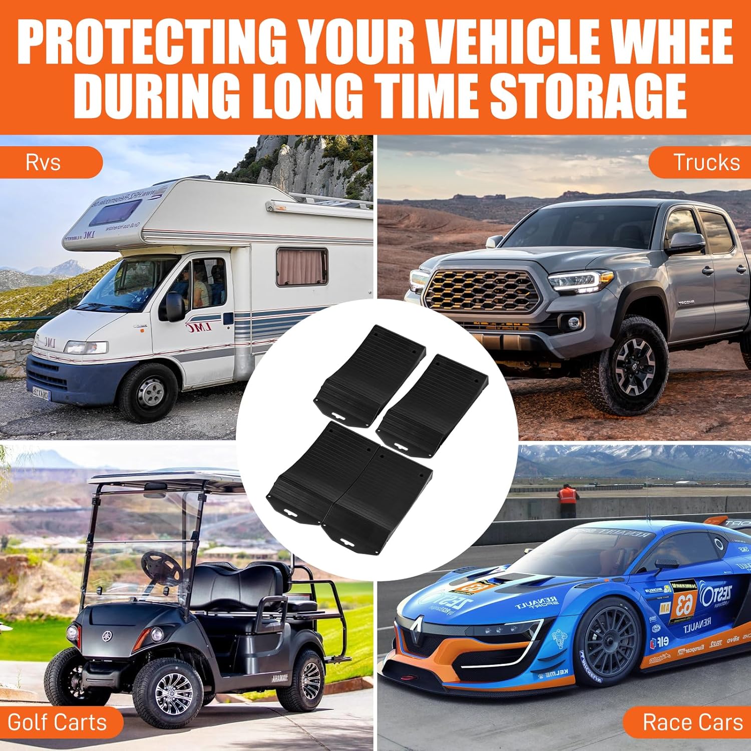 - 【Effective Protection】The curved surface design effectively disperses the vehicle weight. When the vehicle is stored at rest can effectively prevent tire deformation, flat tire, the formation of flat spots. Extend the life of the tire and slow down the aging deformation.