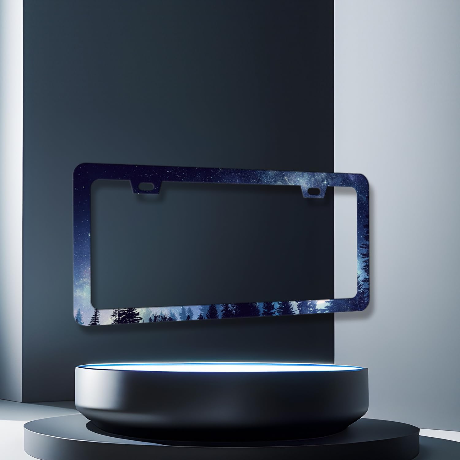 Beautiful Galaxy License Plate Frame Starry Sky Galaxy Forest License Plate Holder for Personalized Car Decorative Stainless Steel Colorful License Plate Galaxy Auto Part 12.2" x 6.2"