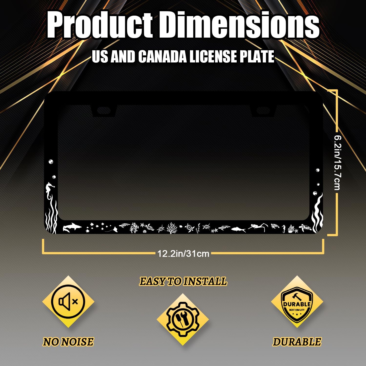 - The size of the license plate frame is: 12.3" x 6.3" , it fits all standard size US and Canada vehicle license plates.the stylish design frame fits ly on your car license plate.
